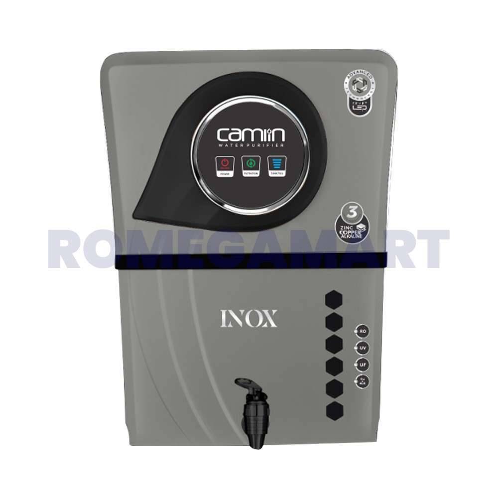 The Camlin Inox Zinc, Copper, and Alkaline Water Purifier in grey offers multi-stage purification for superior water quality. With a 10-12 liter storage capacity, it ensures a consistent supply of purified water. This purifier combines the benefits of Zinc, Copper, and Alkaline filtration, promoting better health by balancing water’s pH levels and adding essential minerals. The smart LED indicator provides a modern touch, allowing you to easily track the purification process. Its sleek grey color fits seamlessly into any kitchen decor.