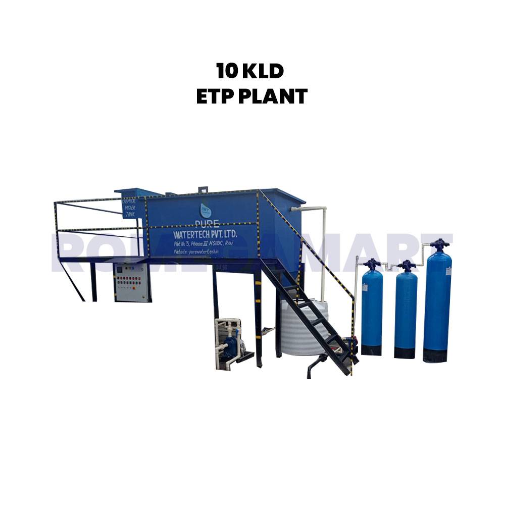A 10 KLD ETP (Effluent Treatment Plant) is a wastewater treatment system designed to handle and treat up to 10,000 liters per day of industrial or domestic effluent. It is commonly used in industries like textiles, pharmaceuticals, food processing, and manufacturing to remove pollutants, chemicals, and contaminants from wastewater, ensuring compliance with environmental standards before discharge or reuse. The plant typically includes processes such as screening, primary treatment, biological treatment, and advanced filtration for effective wastewater management.