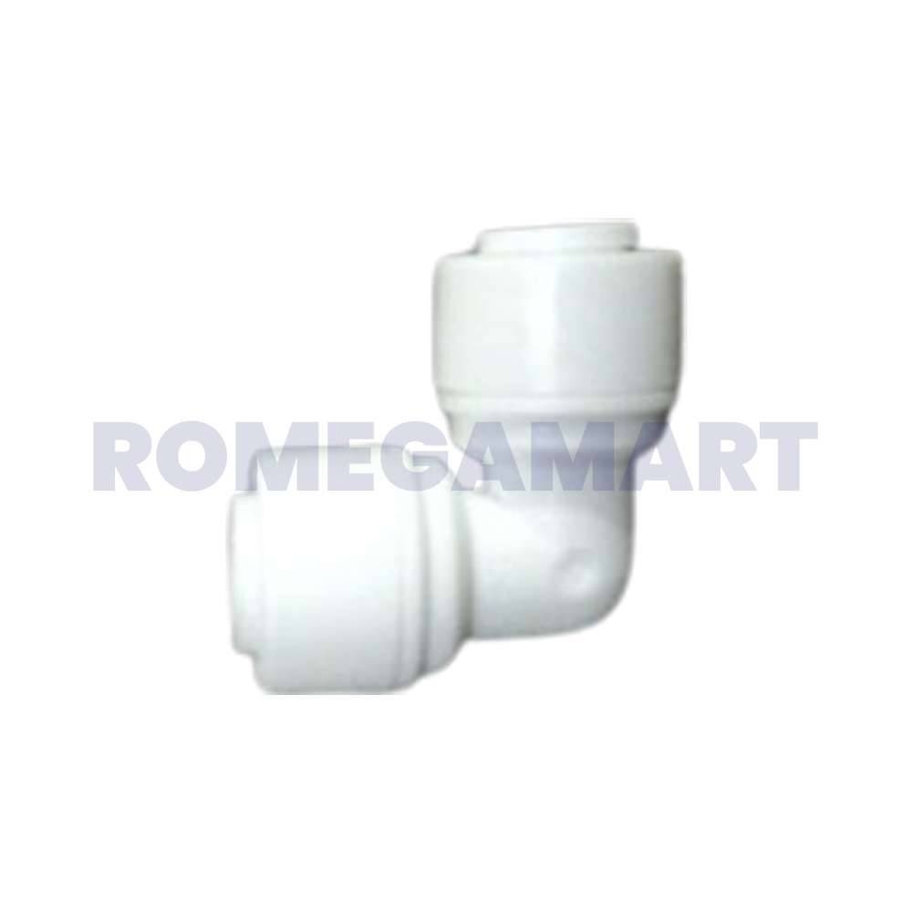 A 1/4 inch elbow with double push-fit connectors, made from durable plastic material, offers a reliable and easy-to-install solution for domestic plumbing applications. This white-colored elbow fitting is ideal for connecting pipes at a 90-degree angle without the need for additional tools or adhesives. Designed for use in water supply systems, it ensures a secure and leak-free connection, making it perfect for residential plumbing projects. The push-fit mechanism allows for quick and hassle-free installation, making it an excellent choice for DIY enthusiasts and professional plumbers alike.