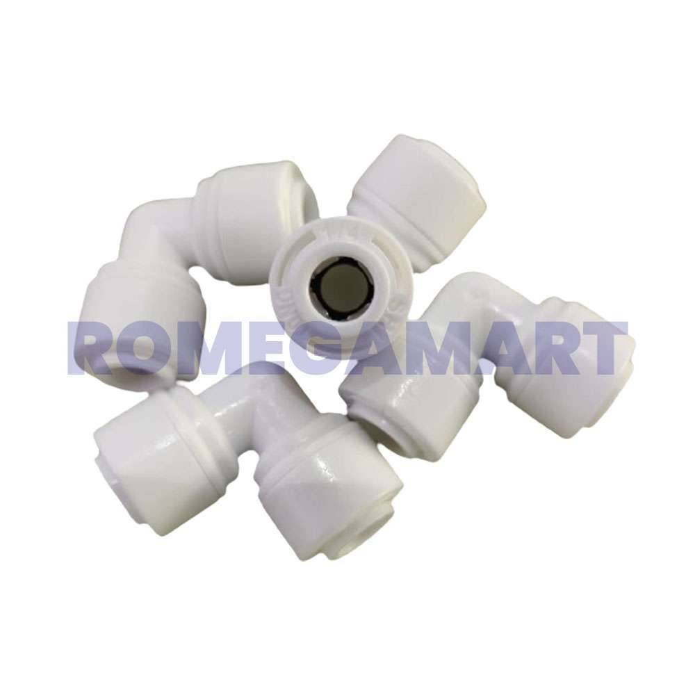 The 1/4 Inch Elbow Double Push Fit in white is designed for seamless domestic water system installations. This pack of 100 pieces offers high durability and reliability, featuring a push-fit connection that ensures a secure and leak-proof joint without the need for tools or additional fittings. The white color provides a clean, modern look that complements various water systems. Ideal for connecting pipes at a 90-degree angle, these elbows are perfect for quick and efficient setup, making them a valuable addition to any domestic water system. Durable and easy to install, they simplify the assembly process while maintaining system integrity.