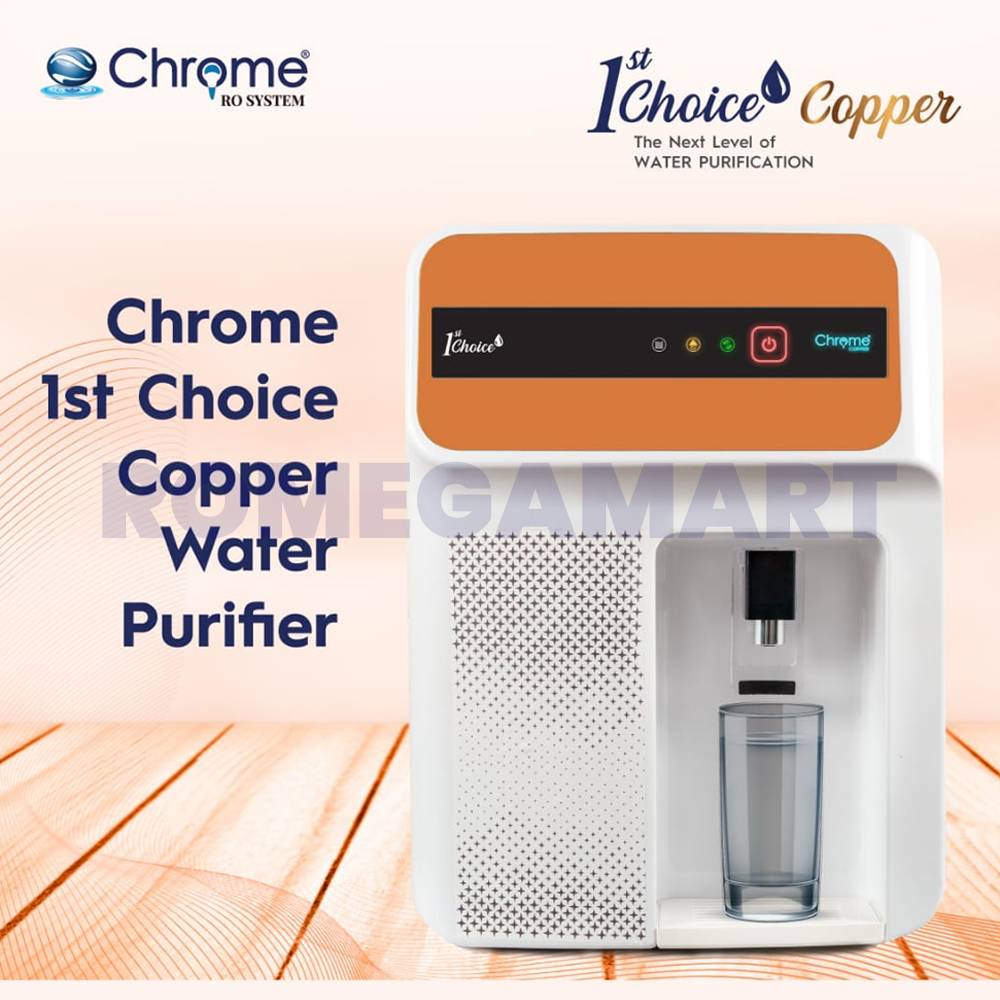The 1st Choice White With Copper 12-Liter Storage Water Purifier is an advanced domestic water filtration system designed to deliver clean, healthy water. Featuring a sleek white design, it incorporates copper, known for its antimicrobial properties, which helps improve water quality. The purifier uses multiple filtration stages, including RO (Reverse Osmosis), UV (Ultraviolet), and UF (Ultrafiltration) technologies, ensuring the removal of harmful contaminants, bacteria, and viruses. With a 12-liter storage capacity, it provides a steady supply of purified water for everyday use. This purifier is ideal for households seeking a reliable and effective water purification solution.