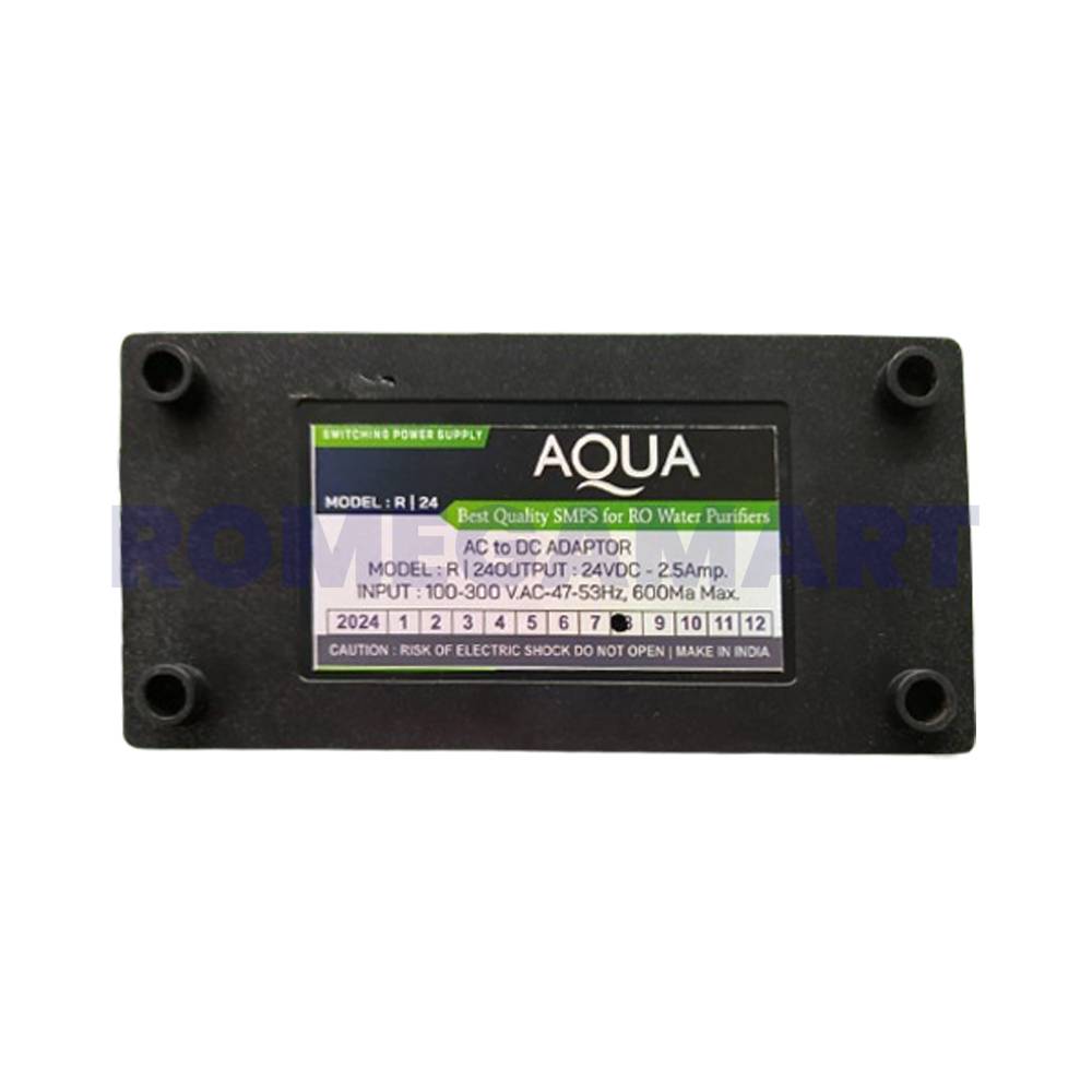 The 24V Aqua 2.5 Ampere AC/DC SMPS from Meditech products, made of black ABS plastic, is a compact and efficient power supply unit designed for use with various electronic devices, particularly water purifiers and similar systems.