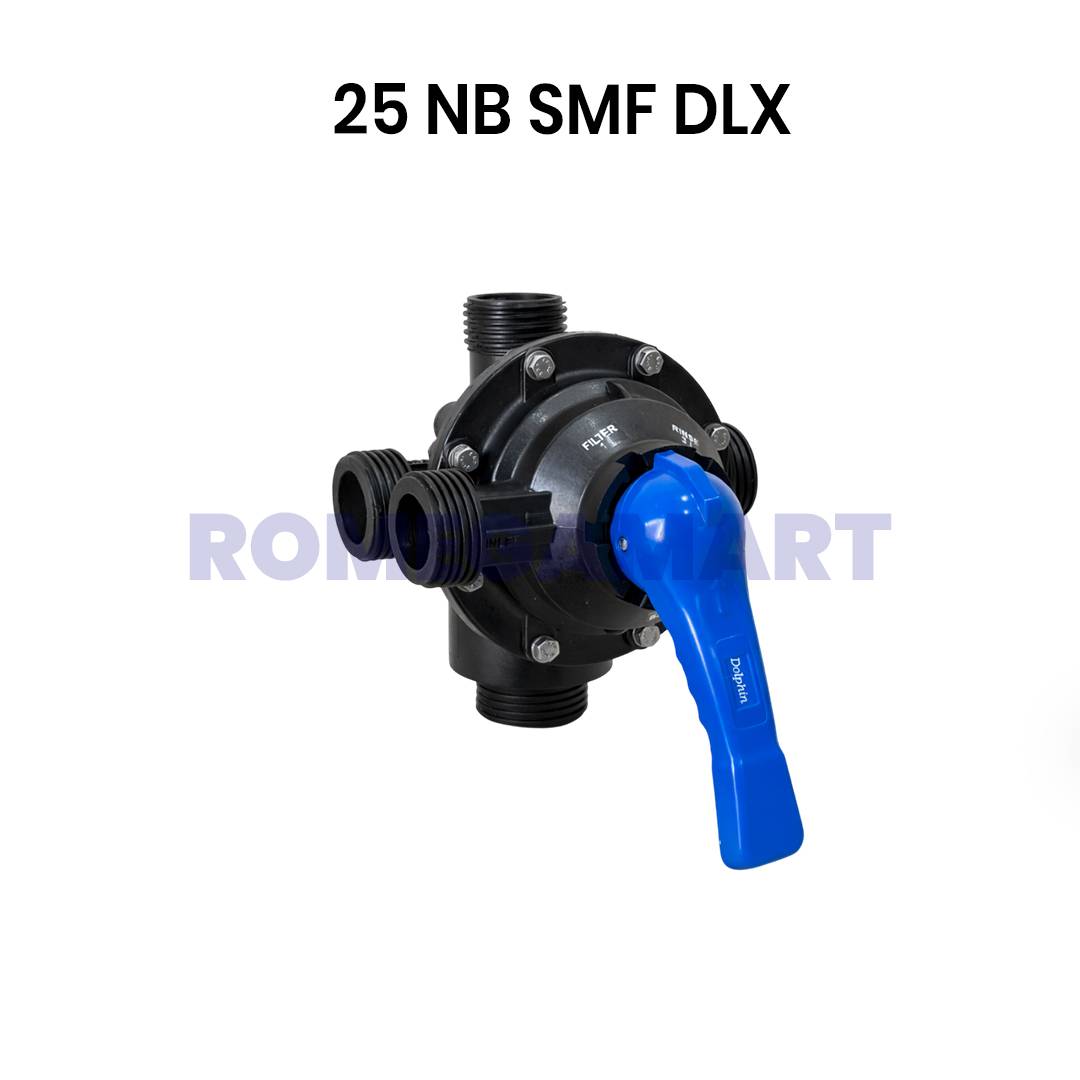The 25 NB SMF DLX Top Mount Multiport Valve For Water Softener, Black Color is a premium-quality control valve designed for efficient water flow management in residential and commercial water softener systems. Built with durable materials and engineered for long-lasting performance, this top-mount multiport valve ensures smooth operation and reliable control of backwash, rinse, service, and other cycle functions.