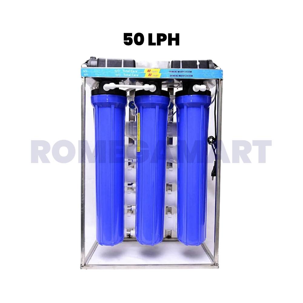 The 50 Lph Commercial RO Model in Blue Color Stainless Steel by AGS Enterprises is a powerful water purification system tailored for commercial use. With a filtration capacity of 50 liters per hour, it provides a consistent supply of safe and clean drinking water for businesses, offices, and restaurants. Built with durable stainless steel and equipped with advanced Reverse Osmosis (RO) technology, this purifier removes impurities, heavy metals, and harmful contaminants. The sleek blue design adds a modern touch, making it a perfect choice for reliable and efficient water purification.