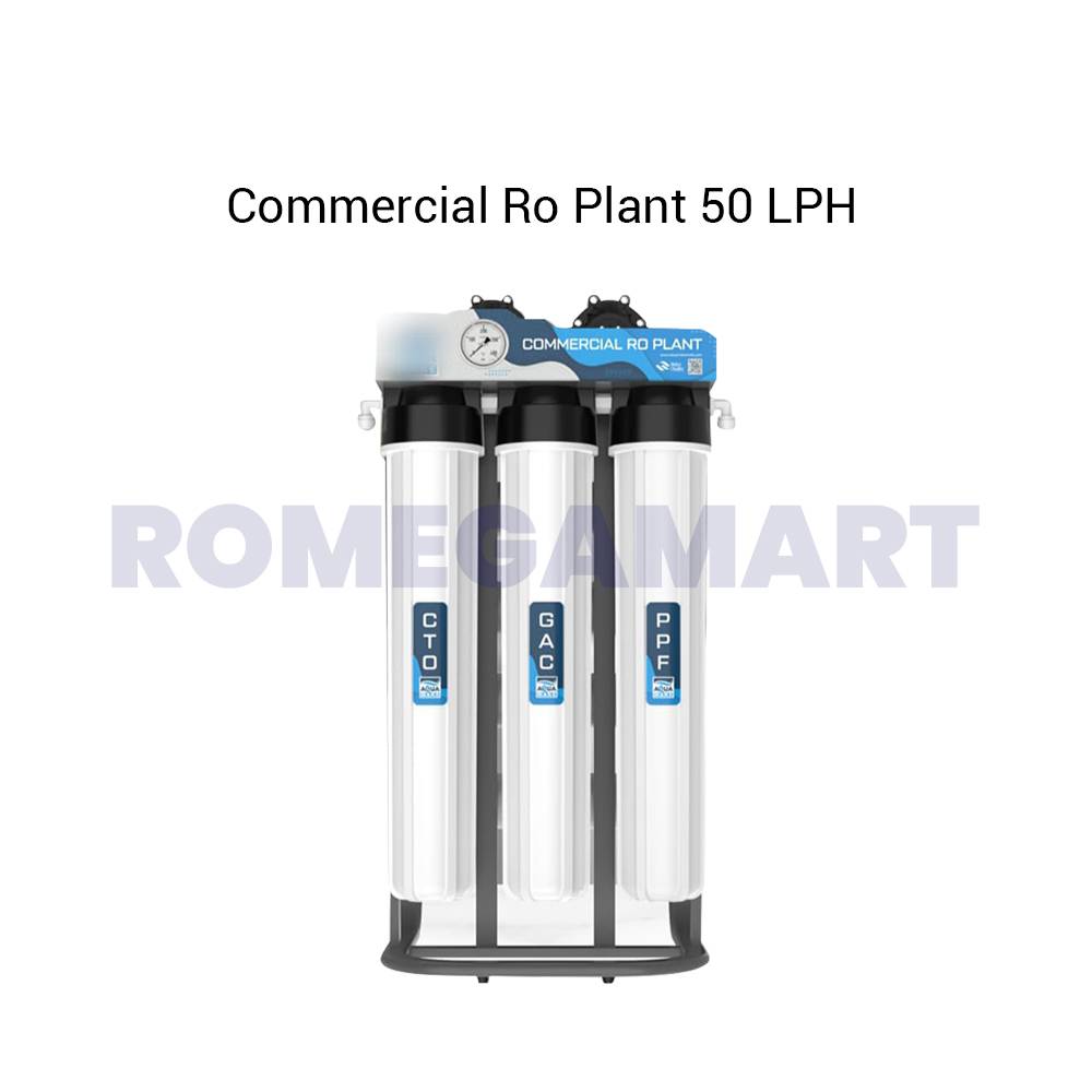 The 50 LPH Commercial RO Plant in white is an efficient water purification solution designed for small to medium commercial establishments. Built with durable FRP (Fiber Reinforced Plastic) material, this plant offers long-lasting performance and reliable filtration. Capable of processing up to 50 liters per hour, it effectively removes impurities, chemicals, and contaminants from water, ensuring clean and safe drinking water for businesses like restaurants, offices, and small factories. Upgrade your commercial water purification system with this high-quality, cost-effective 50 LPH RO plant for consistent, efficient results.