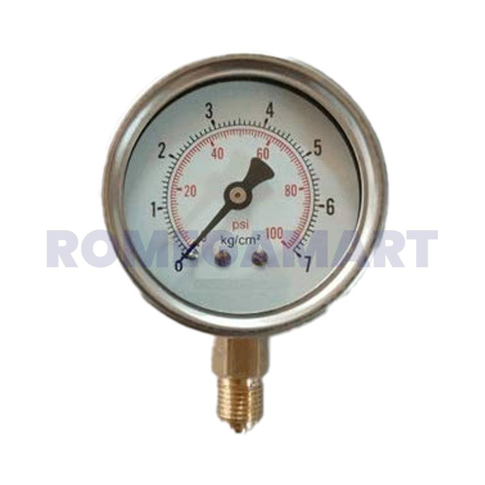 The 7 Kg Line-Cm2 Pressure Gauge with a bottom connection is an essential tool for monitoring pressure in industrial RO (Reverse Osmosis) systems. Built with high-quality materials, this pressure gauge offers accurate and reliable readings for optimal performance in water treatment applications. With a 7 kg/cm² pressure range, it provides precise measurements to ensure the efficient operation of your RO system. The bottom connection design allows for easy installation and a secure fit, making it an ideal choice for industrial environments.