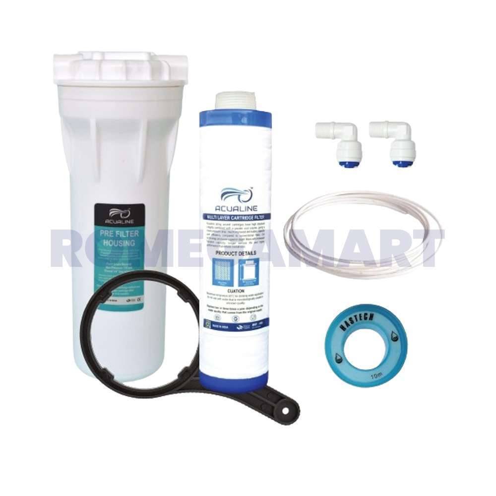 The ACUALINE PRE Ro Filter Long Lasting 9-inch MLT Cartridge PL4-PL6 offers advanced filtration for extended durability and efficiency. Designed for compatibility with ACUALINE filtration systems, it ensures superior sediment removal, enhancing water quality by capturing fine particles and impurities. Its durable construction prolongs its lifespan, reducing maintenance frequency and costs. Ideal for residential and commercial applications, this cartridge is easy to install and replace, providing reliable performance over time. With a focus on reliability and effectiveness, the ACUALINE PRE RO Filter Cartridge is a dependable choice for maintaining clean, clear water, meeting the needs of both households and businesses alike.