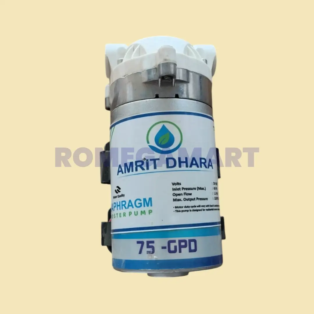 The Amrit Dhara 75 GPD Pump is designed to provide consistent water pressure required for efficient operation of domestic RO water purifier systems. It plays a vital role in boosting inlet water pressure, which is essential for proper functioning of the RO membrane and overall purification process.