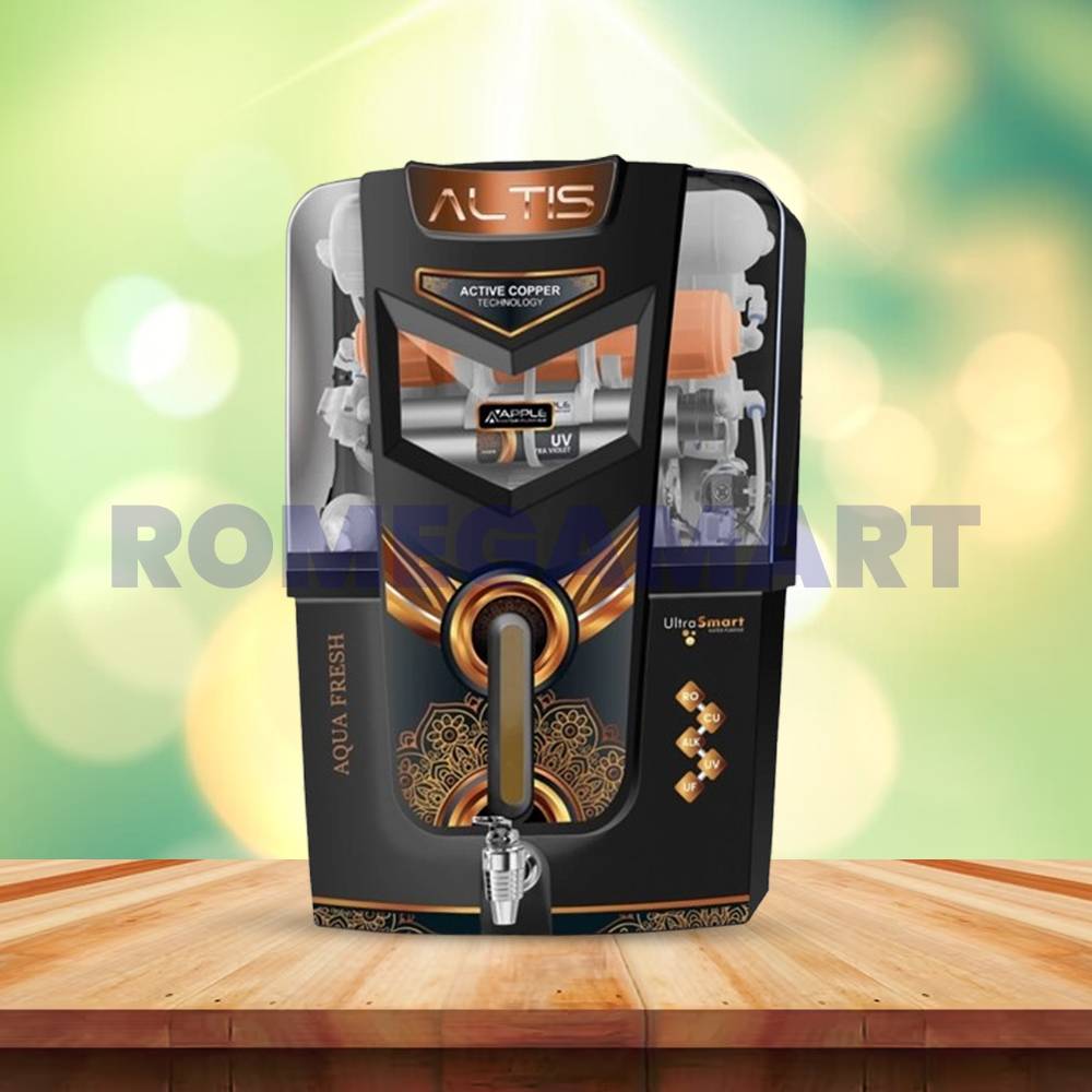 The Apple Altis Black Copper 13-Liter Storage Water Purifier blends elegance with functionality. Constructed from durable ABS plastic, it features a sleek black design with sophisticated copper accents. Its 13-liter capacity ensures a generous supply of purified water, while its stylish appearance complements any modern space. The advanced filtration system provides reliable purification, making it a practical and attractive choice for both home and office use.