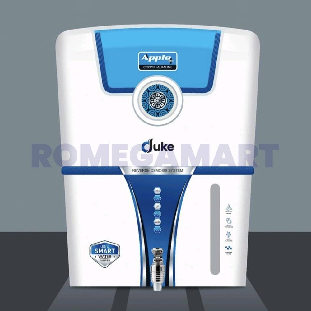 The Apple+ Duke White with Blue Water Purifier combines a sleek design with cutting-edge technology. Featuring a 5-stage purification system with RO, UV, UF, Mineral Cartridge, and TDS Controller, it ensures that your water is free from harmful contaminants while retaining essential minerals. The white and blue color combination adds a modern touch to your kitchen. With its superior performance and affordability, this water purifier from Super Fine Trading CO provides you with clean, healthy drinking water every day.