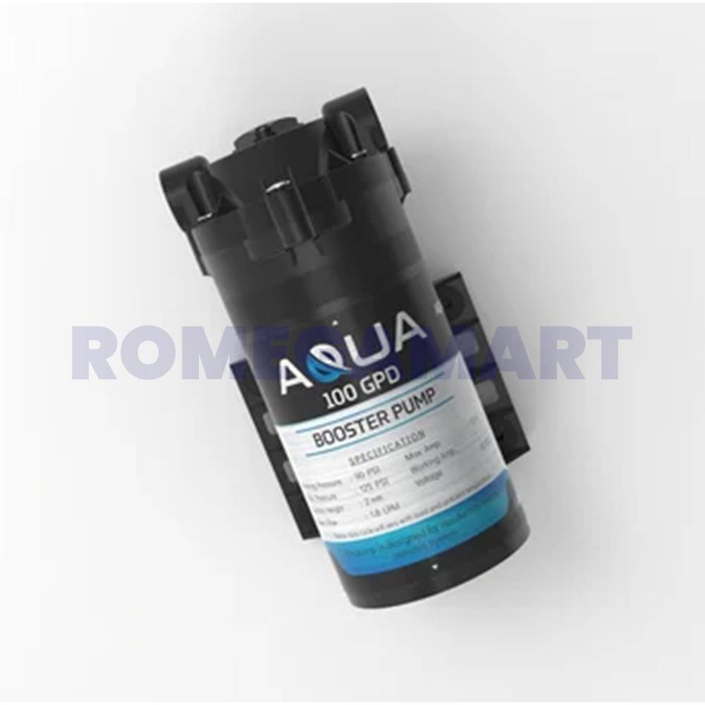 The Aqua 100 GPD Pump, made from durable Chinese copper material, is a high-performance solution for domestic water filtration systems. Designed for efficient water flow, it supports up to 100 gallons per day (GPD) capacity, ensuring a steady supply of purified water. Its copper construction ensures longevity, resistance to corrosion, and high conductivity, making it ideal for household use. Compact and energy-efficient, the pump is easy to install and integrates seamlessly into reverse osmosis (RO) systems. With reliable operation and low maintenance, it is perfect for enhancing water purity and safety in homes.