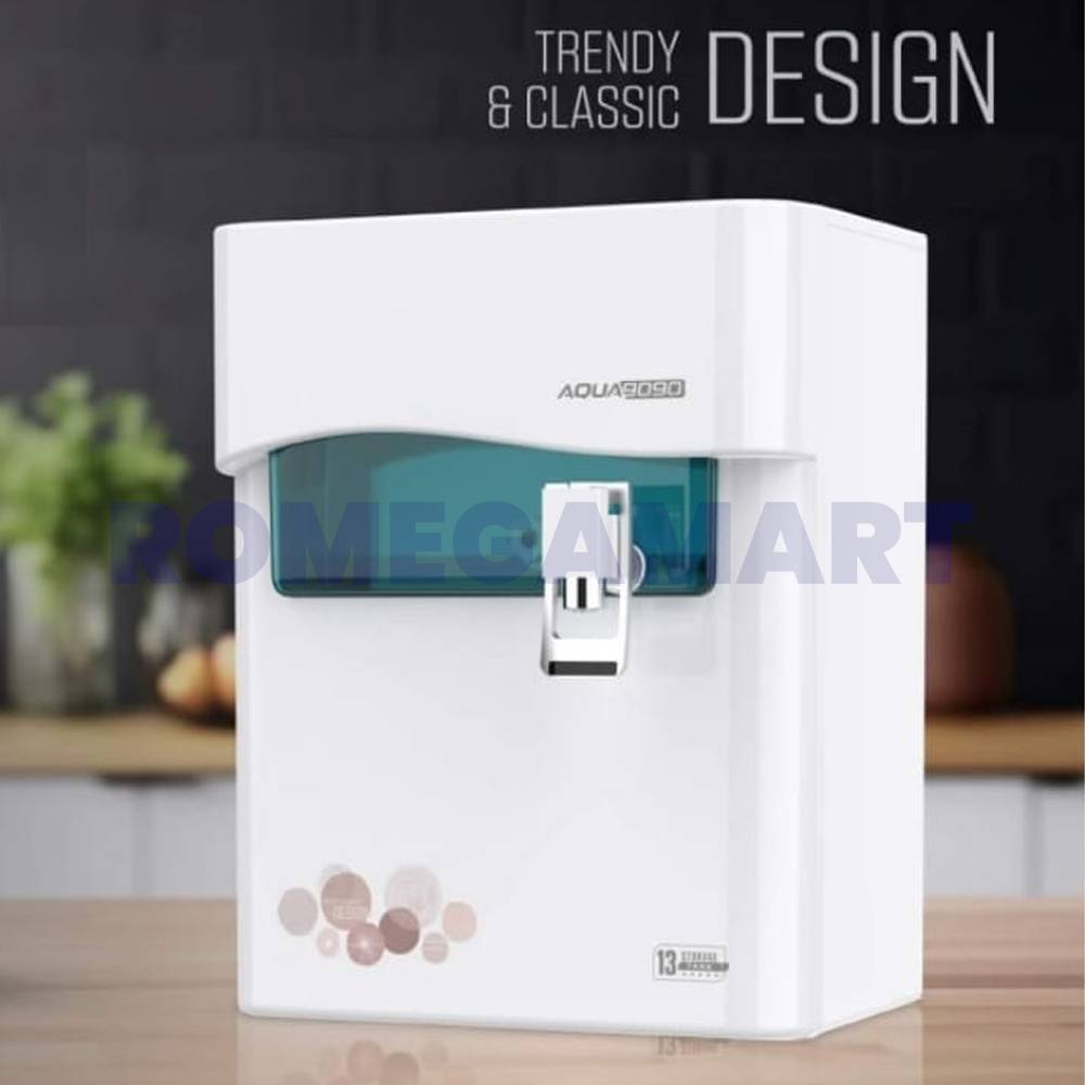 The AQUA 9090 White With Green Color 13 Liter Storage RO+UV+UF Water Purifier is a high-performance domestic water filtration system designed to provide clean and safe drinking water. It combines advanced Reverse Osmosis (RO), Ultraviolet (UV), and Ultrafiltration (UF) technologies to remove impurities, bacteria, viruses, and other harmful contaminants. With a 13-liter storage capacity, it ensures a steady supply of purified water for households. The sleek white and green design makes it a perfect addition to modern kitchens. Crafted from food-grade materials, it is both durable and reliable, delivering superior water quality for everyday use.