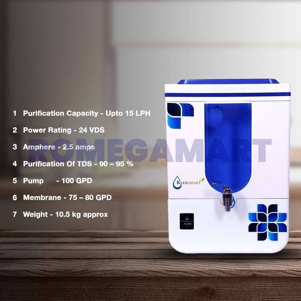 The Aqua Apple Bluesmart 15 Liter Multicolor Domestic RO by Ekta Aqua India combines premium water purification with stylish design. Equipped with advanced RO technology, it effectively removes impurities, toxins, and harmful contaminants to provide safe and pure drinking water. The 15-liter capacity makes it perfect for small to medium-sized families, while the vibrant multicolor design adds a modern touch to your home. Trust Ekta Aqua India for high-quality purifiers, competitive prices, and excellent customer service. Choose Aqua Apple Bluesmart for superior water purification.