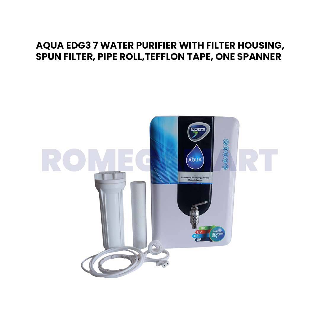 The Aqua Edg3 7 Water Purifier from Suryansh Associates is a complete and advanced domestic purification system designed to deliver pure, safe, and mineral-rich water. Featuring RO+UV+UF+TDS technologies, it ensures multi-stage purification by removing dissolved salts, bacteria, viruses, and impurities while maintaining essential minerals for healthy drinking water. This model includes filter housing, spun filter, pipe roll, Teflon tape, and one spanner, offering a full installation kit for convenience. With durable construction and modern design, the Aqua Edg3 7 is compatible with most household kitchens and ensures long-lasting reliable performance. Ideal for families looking for a complete water purifier solution.