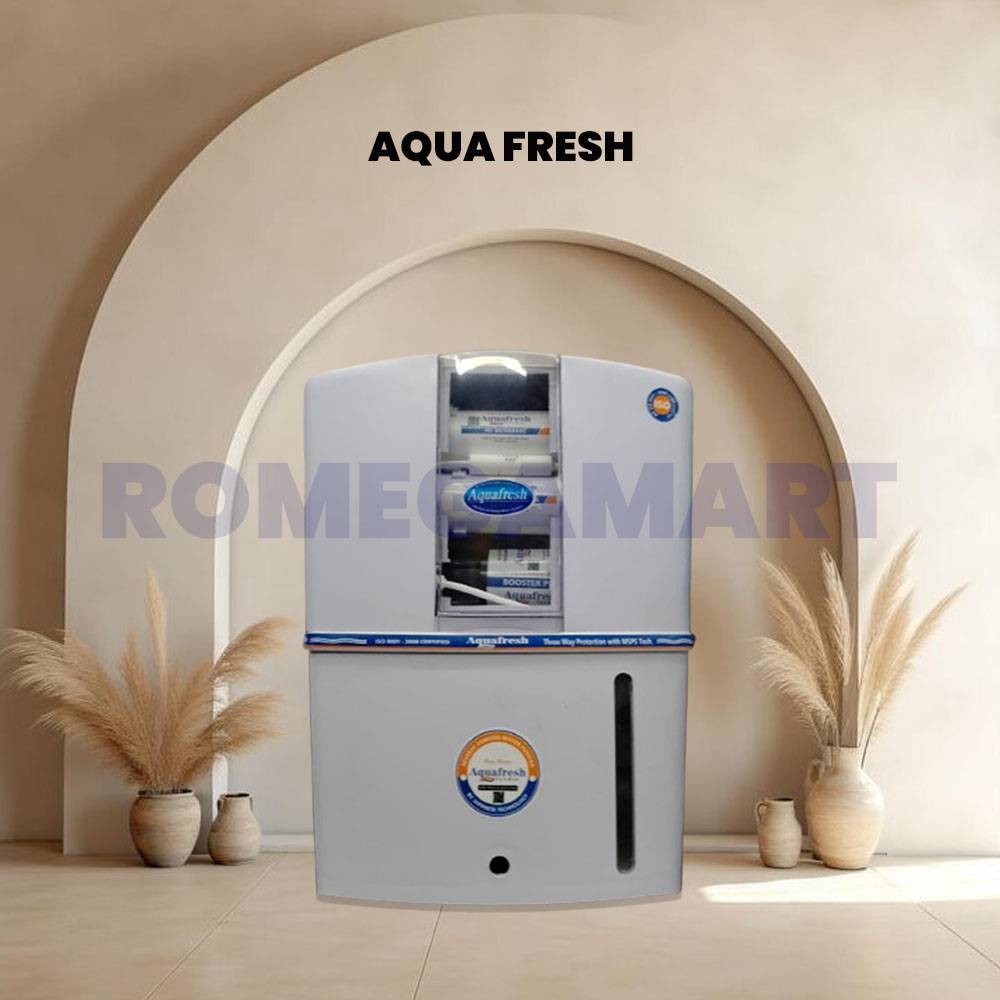 The Aqua Fresh White Color Water Purifier is a sleek and efficient solution for domestic water purification needs. Designed with a 12-liter storage capacity, it ensures an ample supply of clean and safe drinking water for your household. Its advanced filtration system effectively removes impurities, harmful contaminants, and bacteria, delivering fresh and healthy water. The durable ABS plastic construction ensures long-lasting performance and easy maintenance. Its compact and modern white design blends seamlessly with any kitchen decor. Ideal for families, this purifier guarantees reliable water purification with a user-friendly interface, offering convenience and peace of mind for your home.