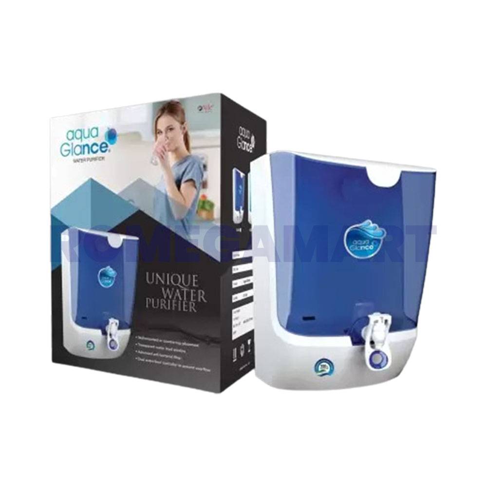The Aqua Glance Blue 9 Liter RO Water Purifier is a premium domestic water purification solution designed to deliver safe and clean drinking water. Crafted from high-quality ABS plastic, it ensures durability and a sleek aesthetic. With advanced RO technology, this purifier efficiently removes impurities, contaminants, and harmful substances, providing pure and healthy water for your family. Its compact 9-liter capacity makes it perfect for small to medium-sized households, combining functionality with style.