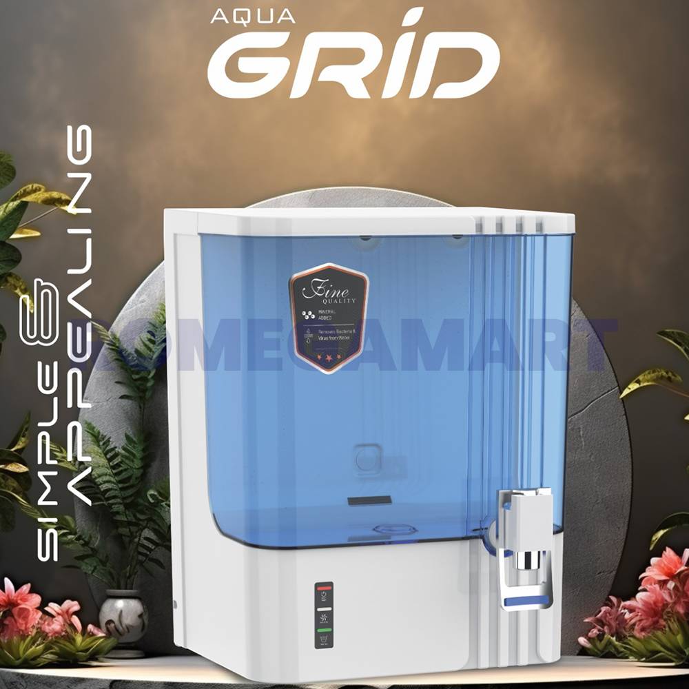 The Aqua Grid Storage Water Purifier combines style and functionality for domestic water purification needs. Featuring a white body with a striking blue transparent design, this unit offers a 10-liter storage capacity, ensuring a steady supply of clean water for your household. It is equipped with advanced purification technologies, including RO, UV, and TDS control, to effectively remove impurities and enhance water quality. Crafted from durable, food-grade materials, the purifier ensures safety and longevity. Its compact design makes it ideal for kitchen countertops or wall mounting, while the easy-to-use interface provides hassle-free operation. Perfect for modern homes prioritizing health and convenience.
