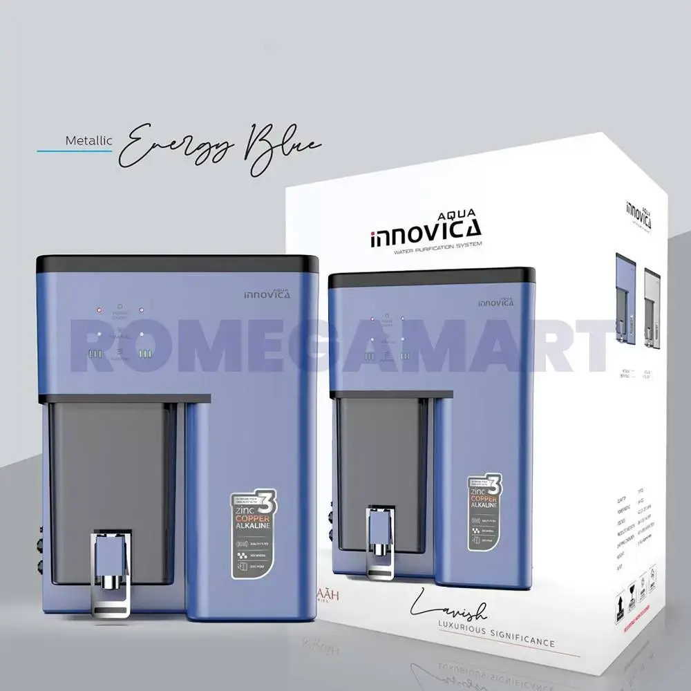 The Aqua Innovica Metallic Energy Blue Water Purifier is a fusion of elegance and innovation. Featuring Zinc, Copper, and Alkaline filtration, it enhances water quality by maintaining essential minerals while removing contaminants. With a generous 10-liter storage capacity, it ensures a steady supply of purified water. The metallic energy blue design adds a modern touch to your kitchen. Its multi-stage purification system eliminates bacteria, chlorine, and heavy metals, providing safe and refreshing water. This durable and efficient purifier is the perfect choice for health-conscious families.