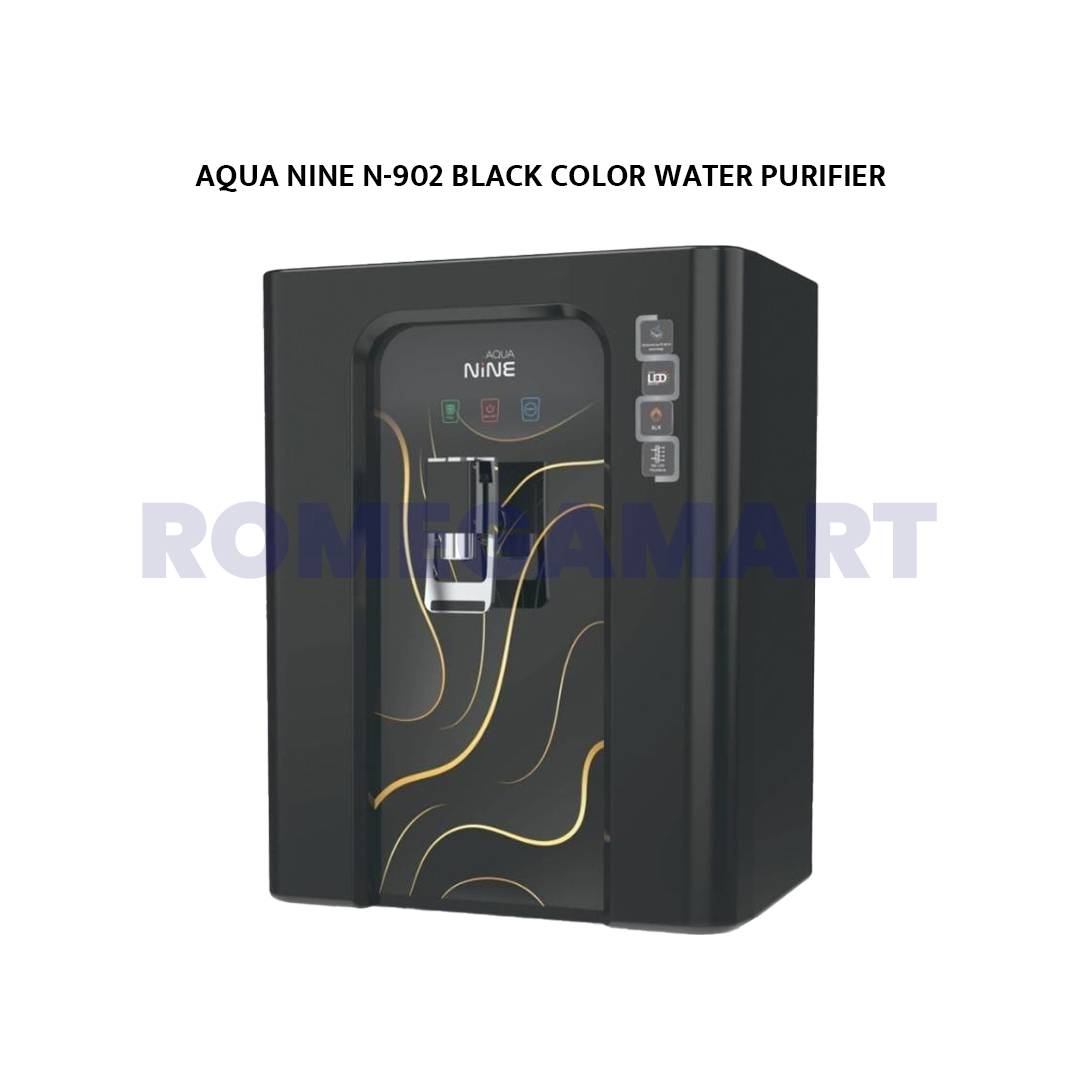 Keep your family healthy with the Aqua Nine N-902 Black Color 12 Liter Storage Water Purifier from Sai Ram Trading. Perfect for domestic use, this purifier uses RO technology to eliminate impurities, harmful bacteria, and excess TDS from your drinking water. Its 12-liter storage capacity ensures an uninterrupted clean water supply throughout the day. The sleek black color design adds a modern and elegant touch to your kitchen. Aqua Nine N-902 combines performance, durability, and affordability — making it a smart choice for every home.