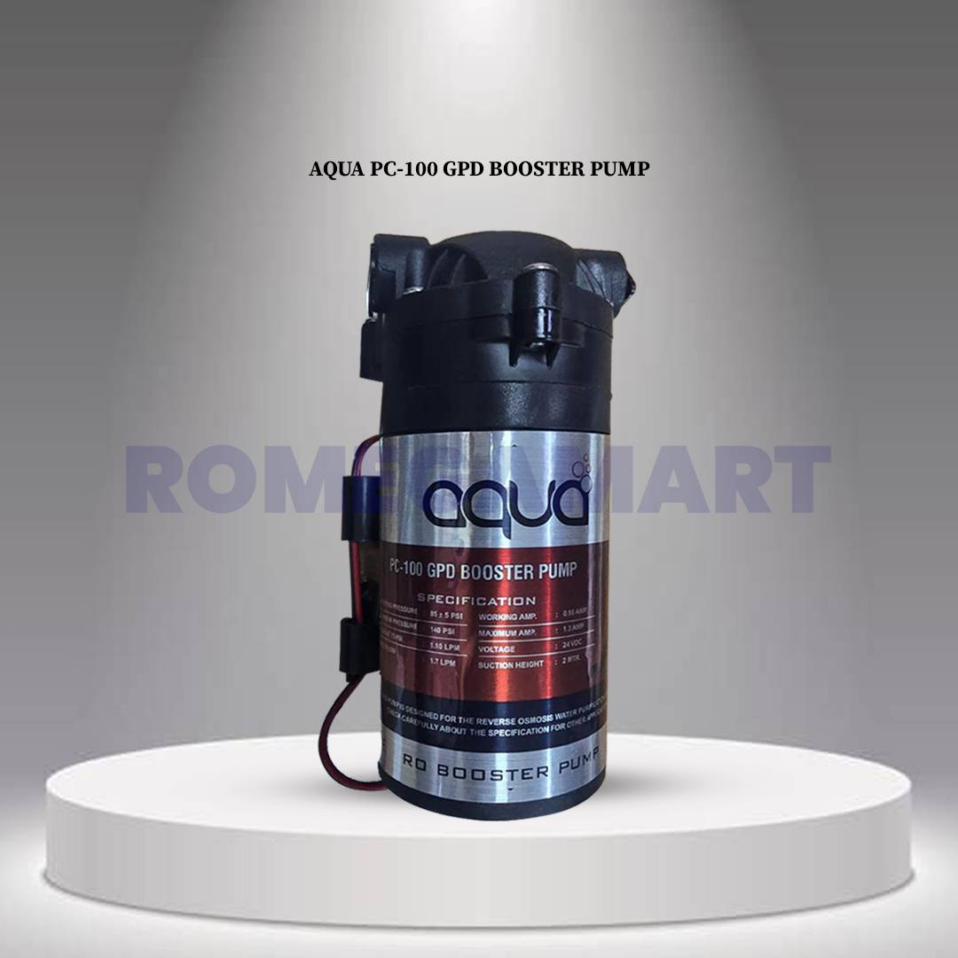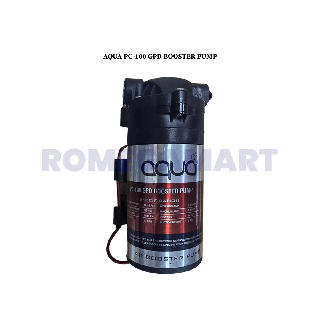 The Aqua PC 100 GPD Booster Pump in black color is a high-efficiency pump designed to enhance the performance of domestic RO water purifier systems. Engineered for reliability, it boosts water pressure to optimal levels, ensuring faster and more effective filtration in areas with low water pressure.