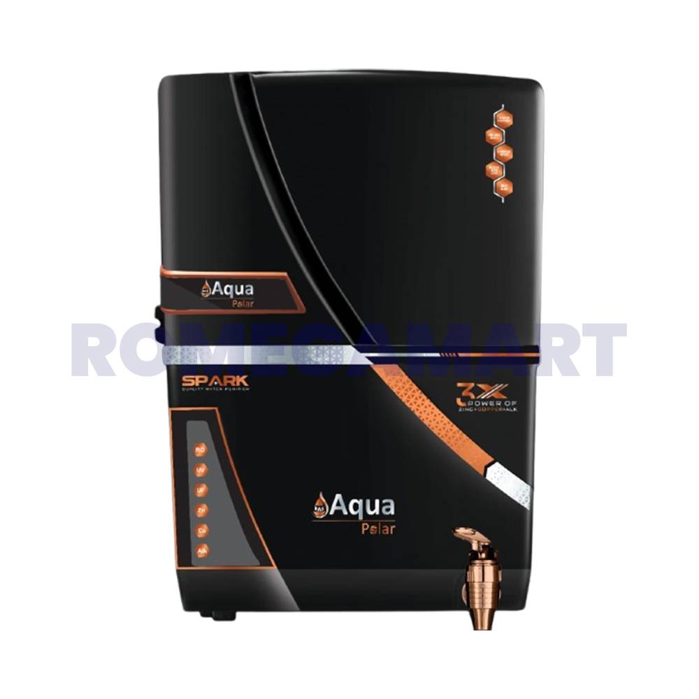 The Aqua Polar Spark Black Color Water Purifier for Domestic Use is a top-tier filtration solution designed for homes. Featuring advanced multi-stage filtration, it effectively eliminates contaminants, chemicals, and bacteria, ensuring your family enjoys safe and clean water. Its sleek black design adds a modern touch to any kitchen, while its compact size ensures easy installation and use. With reliable performance and efficient purification, the Aqua Polar Spark Black provides you with pure, fresh water for drinking, cooking, and other household needs.