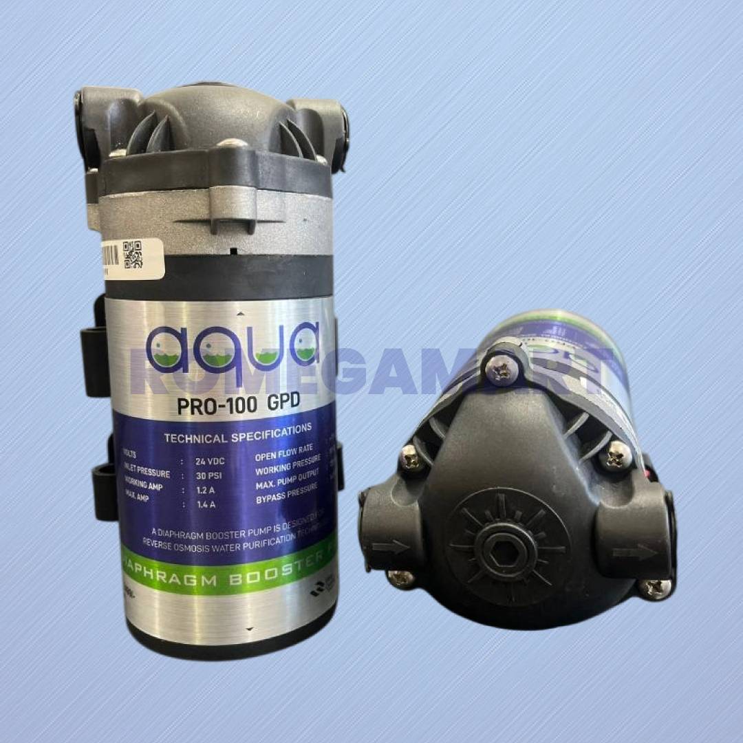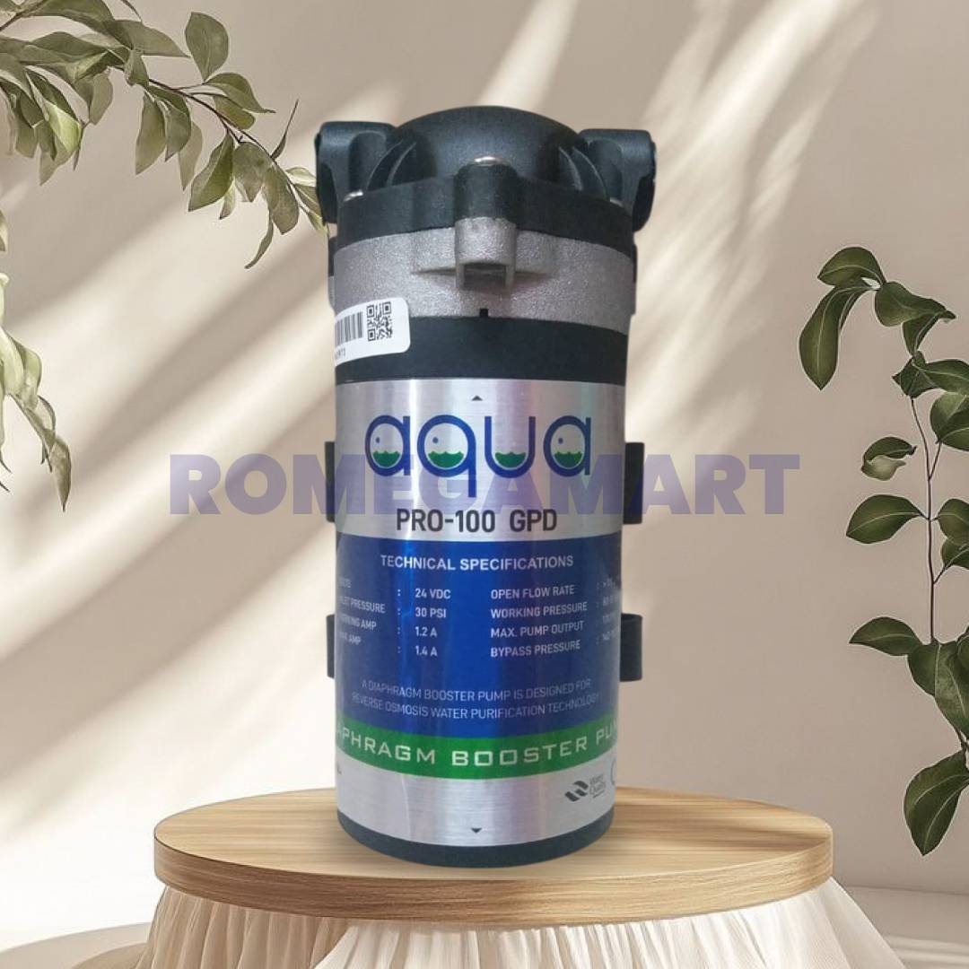 The Aqua Pro 100 GPD Booster Pump is a powerful and reliable component designed to improve the performance of domestic RO water purifiers. Built with a high-quality copper motor, this booster pump delivers consistent pressure to ensure smooth and efficient water filtration. It is specially designed to support 100 GPD RO membranes, helping the purifier operate effectively even in areas with low water pressure.