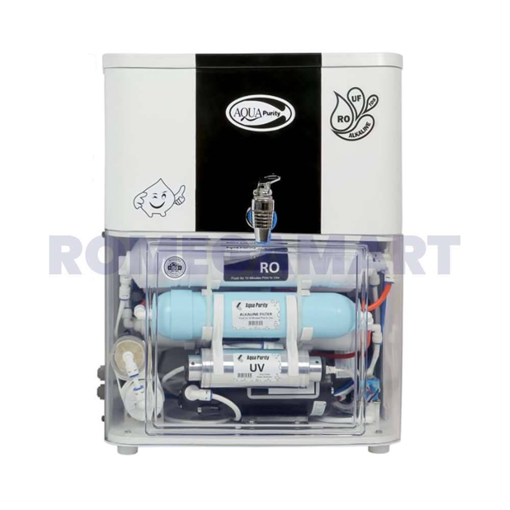 The Aqua Pure 10-Liter Water Purifier combines sleek black and white aesthetics with advanced purification technology, featuring RO, UV, UF, and TDS control. Designed for domestic use, it efficiently removes impurities, ensuring safe and clean drinking water. The 10-liter storage capacity is ideal for households, providing ample supply for daily needs. Its compact design allows for easy placement in kitchens or utility areas. The Aqua Pure is not only functional but also enhances the decor with its modern look. With reliable filtration and user-friendly operation, it's a perfect choice for families seeking high-quality water purification.