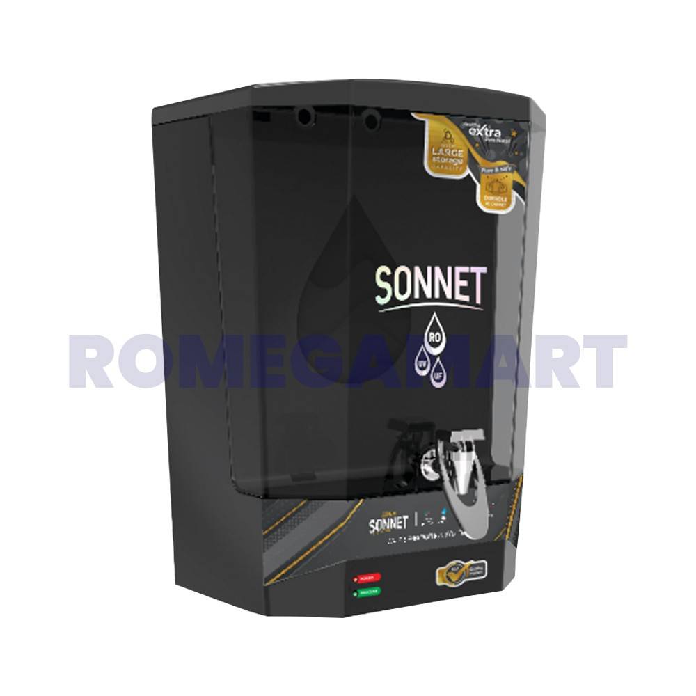 The Aqua Sonnet Metallic Black with LED Indicator Domestic Water Purifier Cabinet is designed to meet your household water purification needs. Crafted from food-grade plastic, it ensures the safety and purity of your drinking water. The attractive Metallic Black color adds a refreshing touch to your kitchen décor. The LED indicator provides real-time information on the purification status, enhancing user convenience. With a spacious 10-liter capacity, this RO cabinet ensures a steady supply of clean and fresh water for your family. Choose Aqua Sonnet for a combination of functionality, safety, and style in your home water purification system.