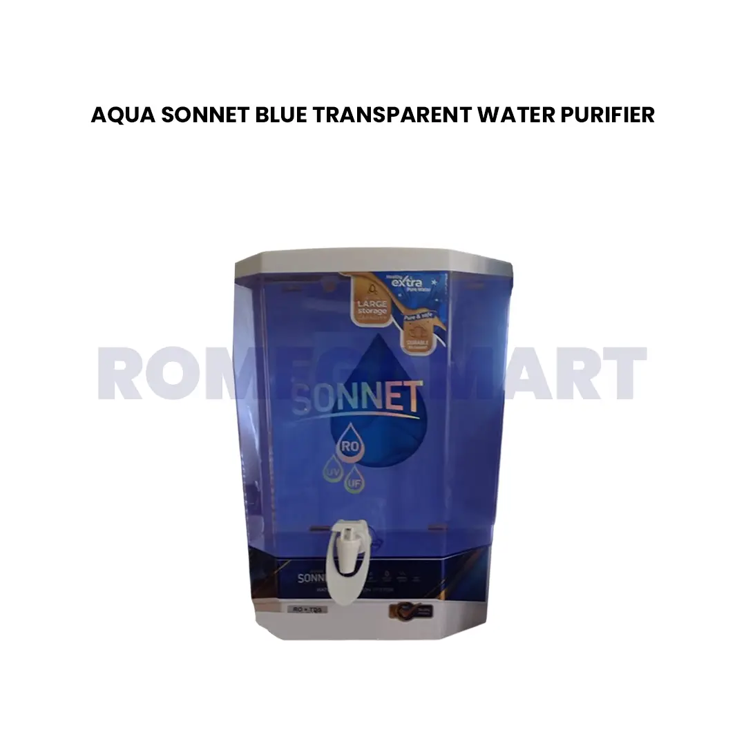 The Aqua Sonnet STD 10 Liter Blue Water Purifier from Jeyam Traders is a reliable and stylish solution for households seeking safe and clean drinking water. Made with durable ABS plastic material and finished in a vibrant blue color, it combines strength with modern aesthetics. With a 10-liter storage capacity, it ensures a continuous supply of purified water for daily domestic use. Designed to effectively remove impurities, chemicals, and dissolved salts, this purifier delivers healthy, great-tasting water. Compact, easy to maintain, and suitable for domestic applications, the Aqua Sonnet STD purifier offers a perfect balance of performance, convenience, and style.