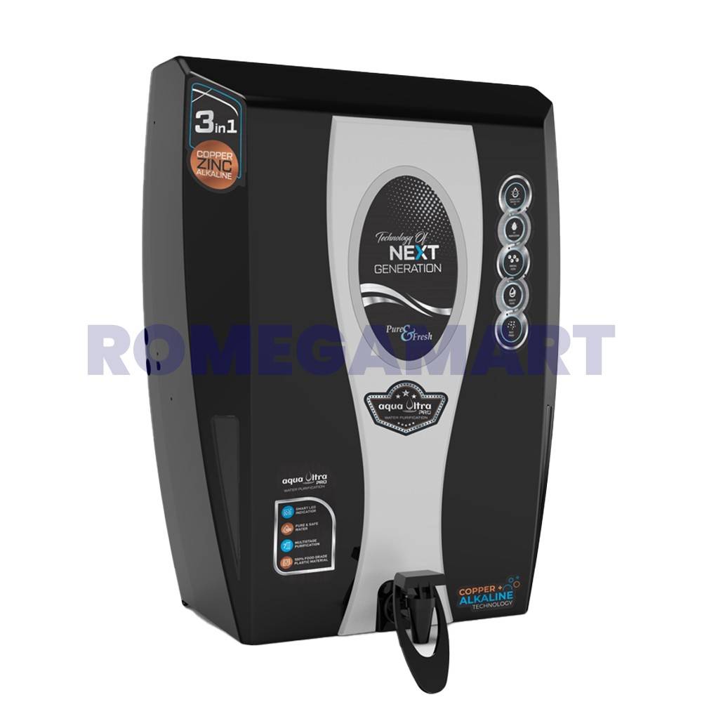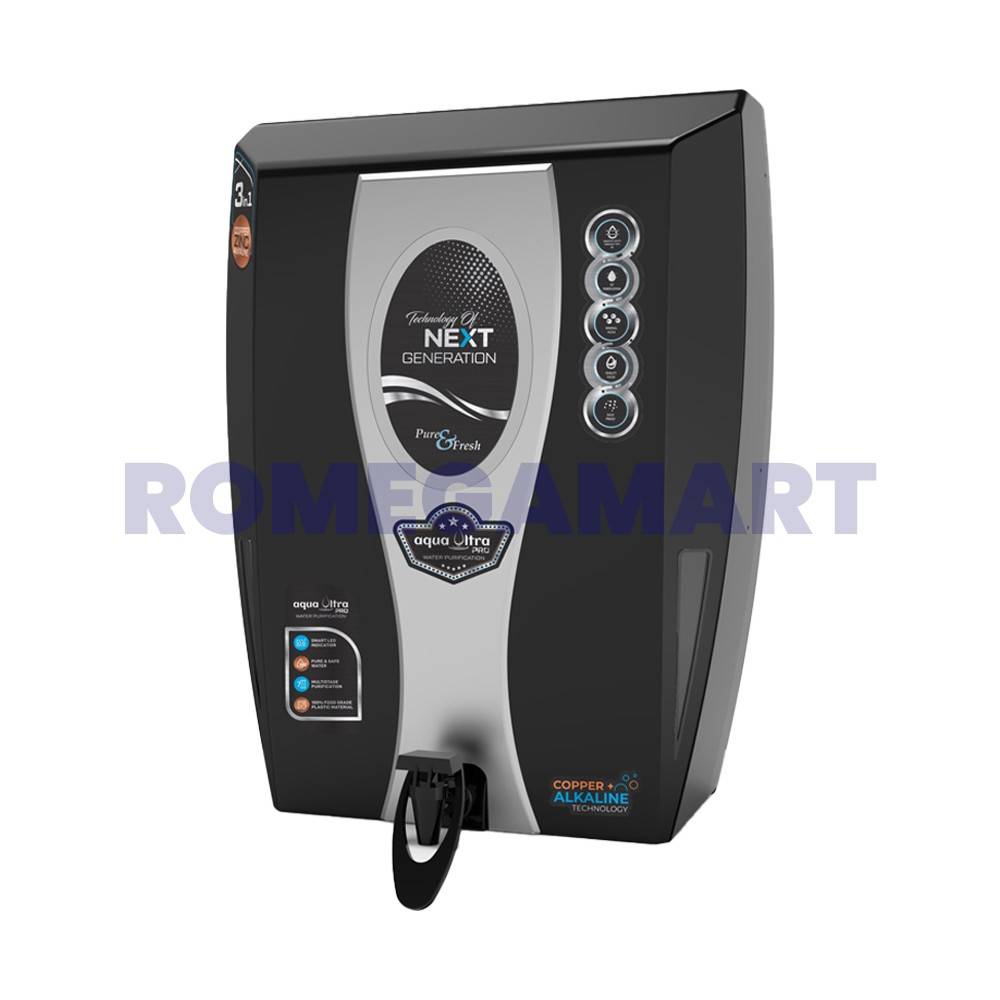 The Aqua Ultra Pro Black Water Purifier for home is a fully automatic solution equipped with Copper+Zinc+Alkaline technology. With a comprehensive system including 13 liters capacity, RO+UV UF, and TDS Controller, this purifier ensures efficient water purification. Elevate your home water treatment with Aqua Ultra Pro, offering a perfect blend of automation, advanced technologies, and a sleek black design enhanced with beneficial copper, zinc, and alkaline elements. Presenting all new Aqua Ultra Pro-Black RO+UV+UF+TDS copper mineral water purifier, in which 100GPD heavy duty motor, 80 GPD imported TFC membrane Gives perfect performance for a long time, Large 13L detachable storage tank with smart UV LED disinfection tank, push fit component for leak proof performance, Copper mineral filter enhance water taste like natural water. suitable for all water sources (tanker, borewell, municipal water) fully automatically operational system saves water and electricity also.