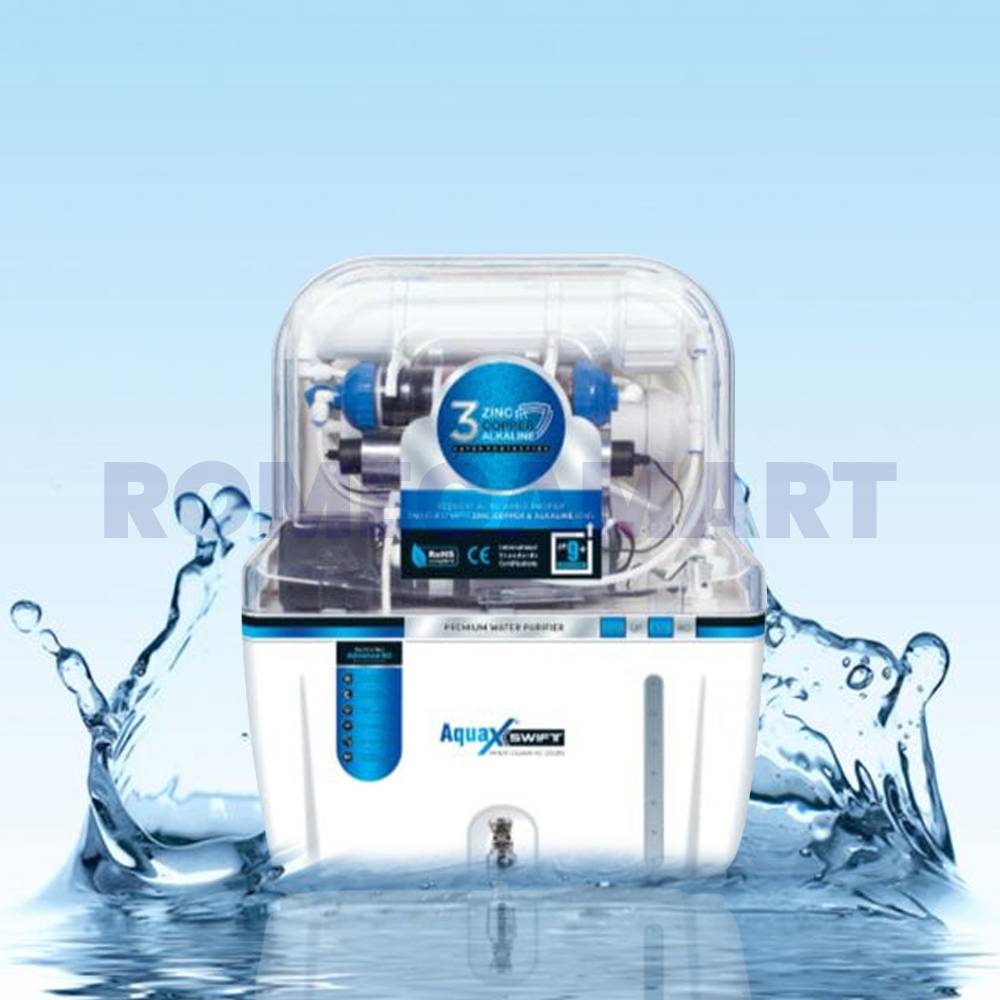 The Aqua X Swift Water Purifier combines advanced RO, UV, and UF filtration technologies with the added benefits of copper, ensuring safe, clean, and mineral-rich drinking water. Its sleek black design enhances any kitchen aesthetic while effectively removing contaminants and bacteria. Ideal for families, this purifier guarantees fresh and healthy water for everyday use.