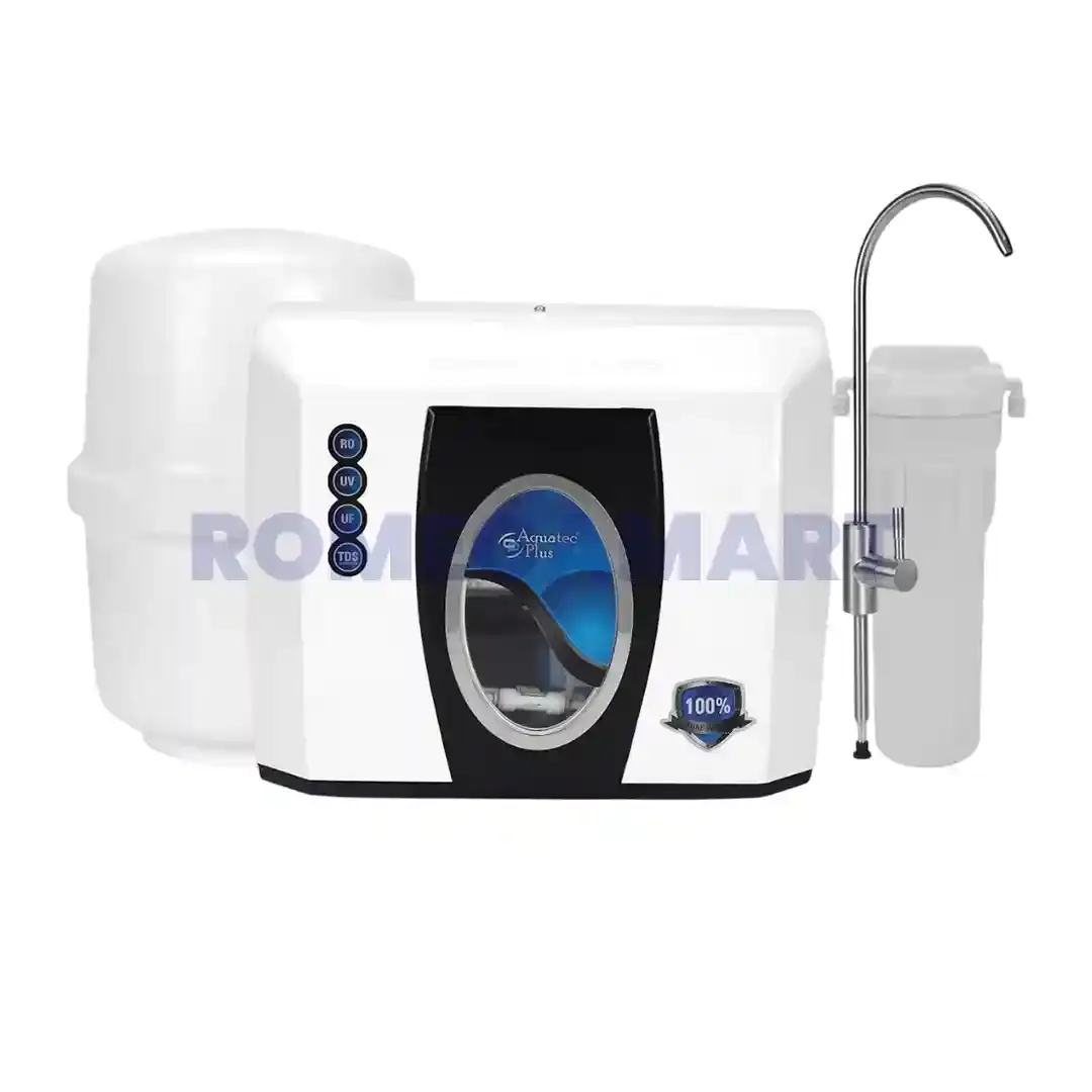 The Aquatee Plus White RO+UF+UV+TDS Under Sink Water Purifier is a smart and space saving solution for modern kitchens. Designed with an advanced RO+UF+UV purification system, it effectively removes dissolved impurities, harmful chemicals, bacteria, and viruses, ensuring safe and pure drinking water. The integrated TDS controller helps retain essential minerals, improving water quality and taste.