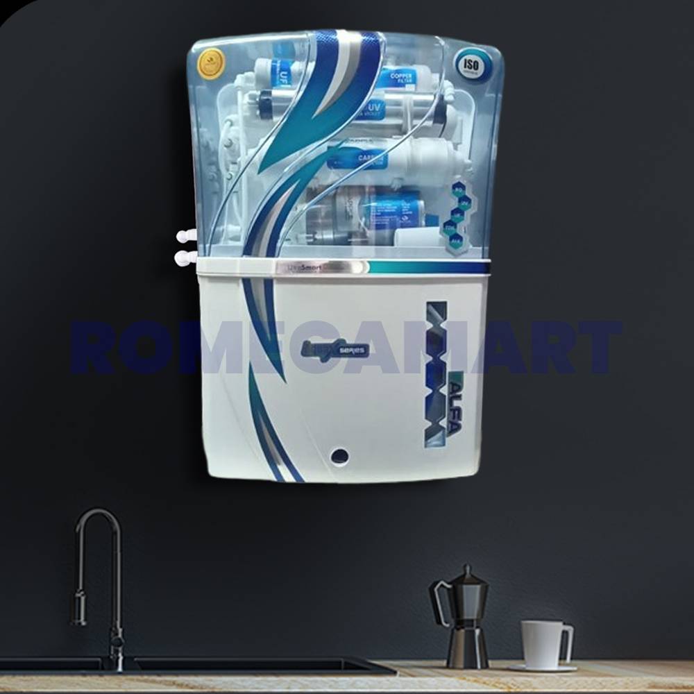 | Filters | Pre-Filter, Sediment, Pre-Carbon, UF, UV LED in side of water storage tank, RO Membrane, Active Copper Cartridge |