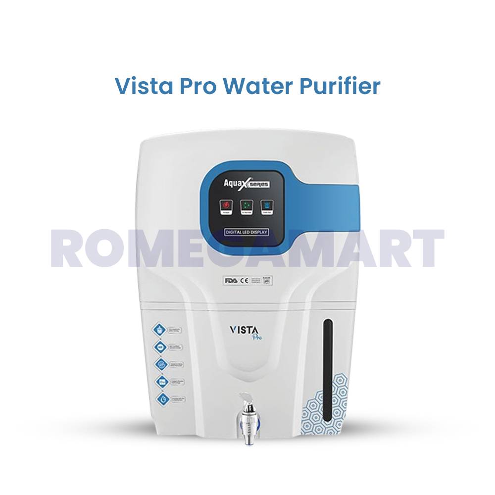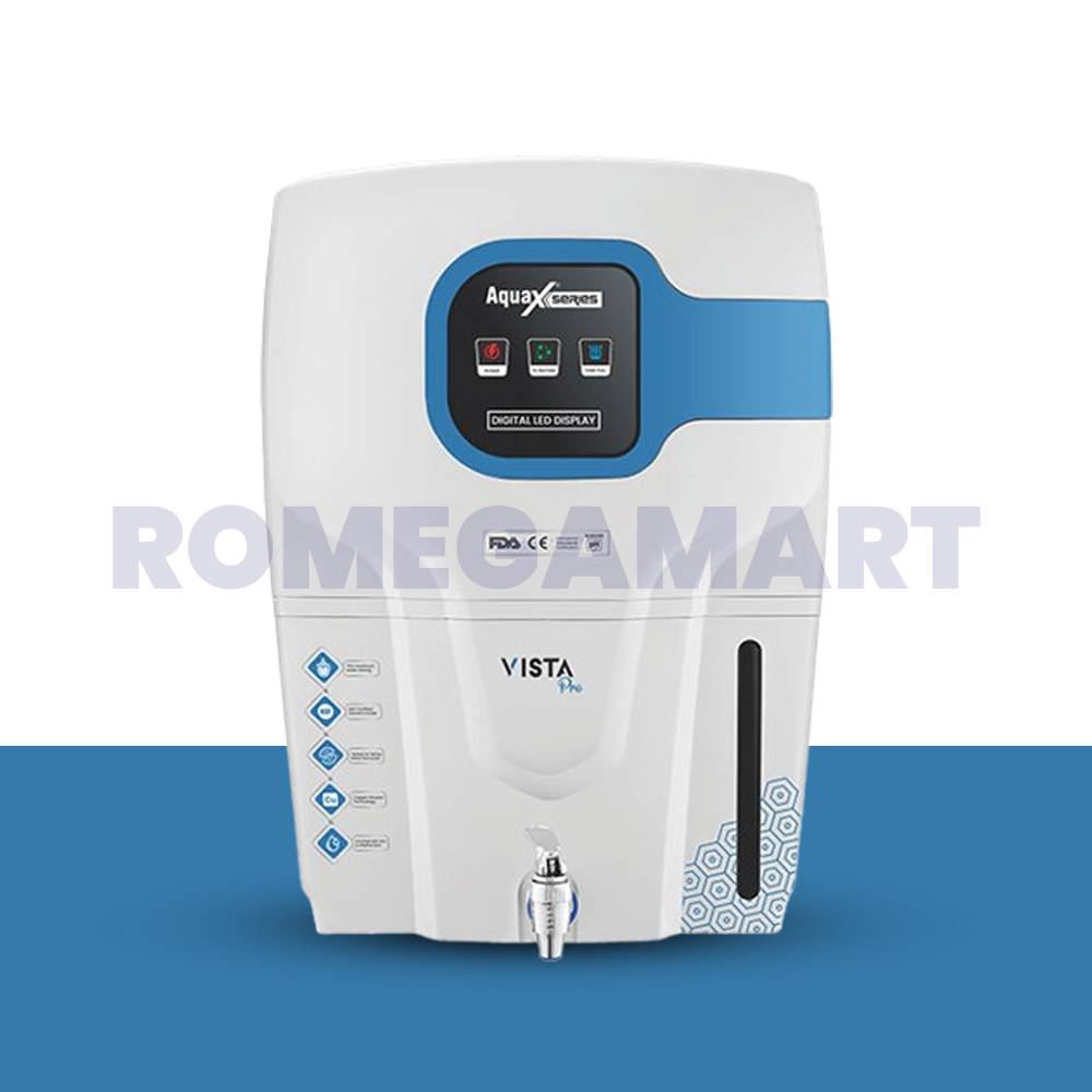 The Aquax Vista Pro White with Blue Water Purifier offers advanced RO, UV, UF, and Mineral Cartridge technologies to ensure your water is purified and safe. Equipped with a TDS controller, it retains essential minerals while improving taste. The sleek white design with blue accents adds a modern touch to your kitchen, combining style and high-performance water purification.