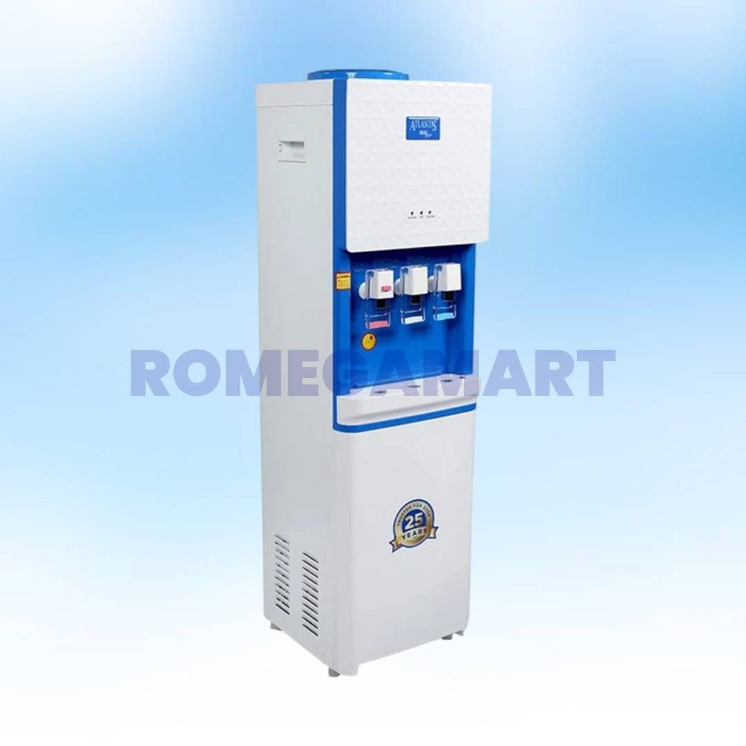 The Atlantis Water Dispenser Big Plus offers hot, cold, and normal water in one convenient appliance, making it perfect for home and office use. With a 8 Liter capacity, it ensures a steady supply of fresh water throughout the day. Its white color design blends seamlessly with modern interiors while providing a hygienic and safe water dispensing solution. This Infinity Water Solution product features easy-to-use temperature controls, energy-efficient operation, and a durable build for long-lasting performance. Ideal for families, workplaces, and meeting areas, it delivers quick access to hot, cold, and room-temperature water. The dispenser’s compact yet sturdy design guarantees effortless placement in kitchens, offices, or lounges. Upgrade your hydration experience with a reliable water dispenser that combines convenience, style, and performance. Perfect for daily water needs, it ensures safe, clean, and readily available water at all times.