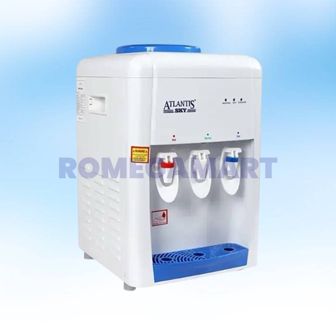 The Atlantis Sky Table Top Water Dispenser is a compact and efficient solution for delivering hot, normal, and cold water instantly. Designed for home and office use, this tabletop model saves space while providing powerful performance. Its white color finish adds a clean and modern touch to any environment, making it suitable for kitchens, cabins, and reception areas. Equipped with advanced heating and cooling technology, it ensures quick access to water at your desired temperature. This Infinity Water Solution product is built with durability and ease of use in mind, featuring a simple control system for hassle-free operation. Ideal for small spaces, it offers reliable performance with low energy consumption. Upgrade your daily hydration with a compact water dispenser that combines style, convenience, and efficiency, making it perfect for everyday use.