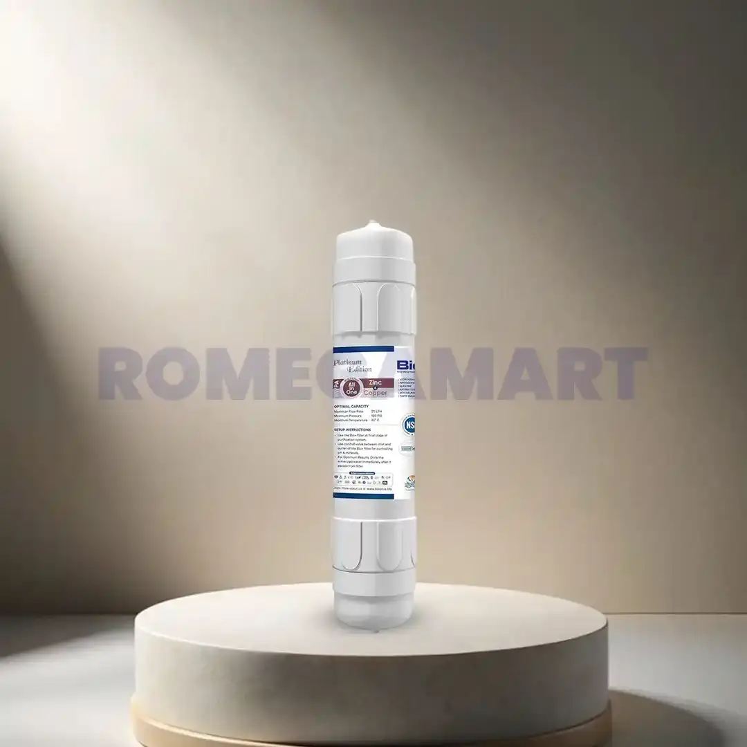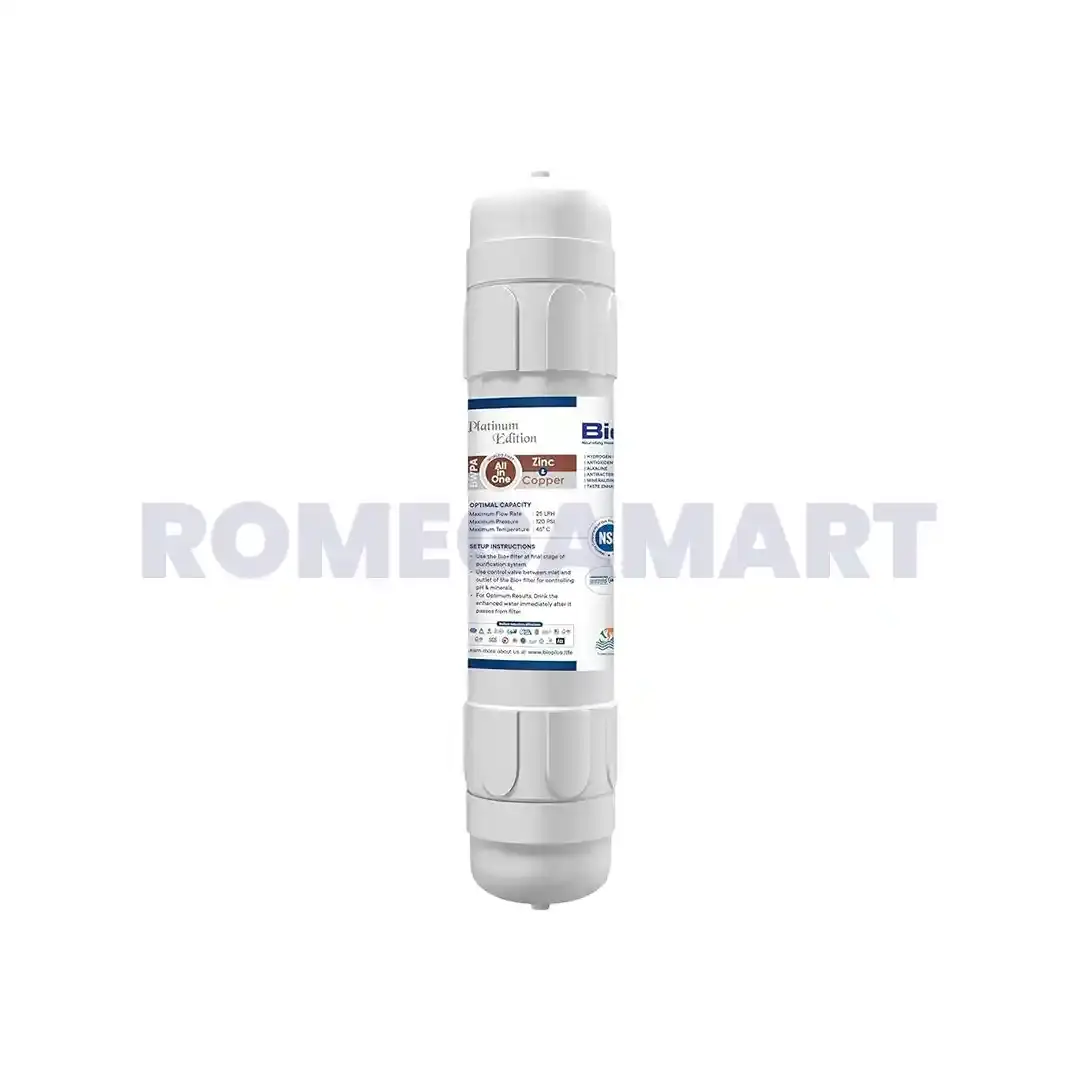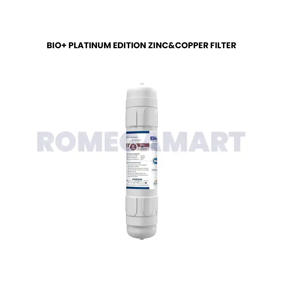 Enhance your water quality with the Bio+ Platinum Edition Zinc & Copper Filter (Silver Color, Plastic Material), designed for domestic RO systems and available at Chandausi RO & Care Centre. This premium-quality filter enriches purified water with essential trace elements like zinc and copper, known for their immune-boosting and antimicrobial benefits. Made from durable plastic, it ensures long-lasting use and easy installation. Perfect for households seeking healthier, mineral-rich water, the Bio+ Platinum Zinc & Copper Filter maintains freshness and purity in every glass. Trust Chandausi RO & Care Centre for genuine RO filters and reliable water purification accessories.