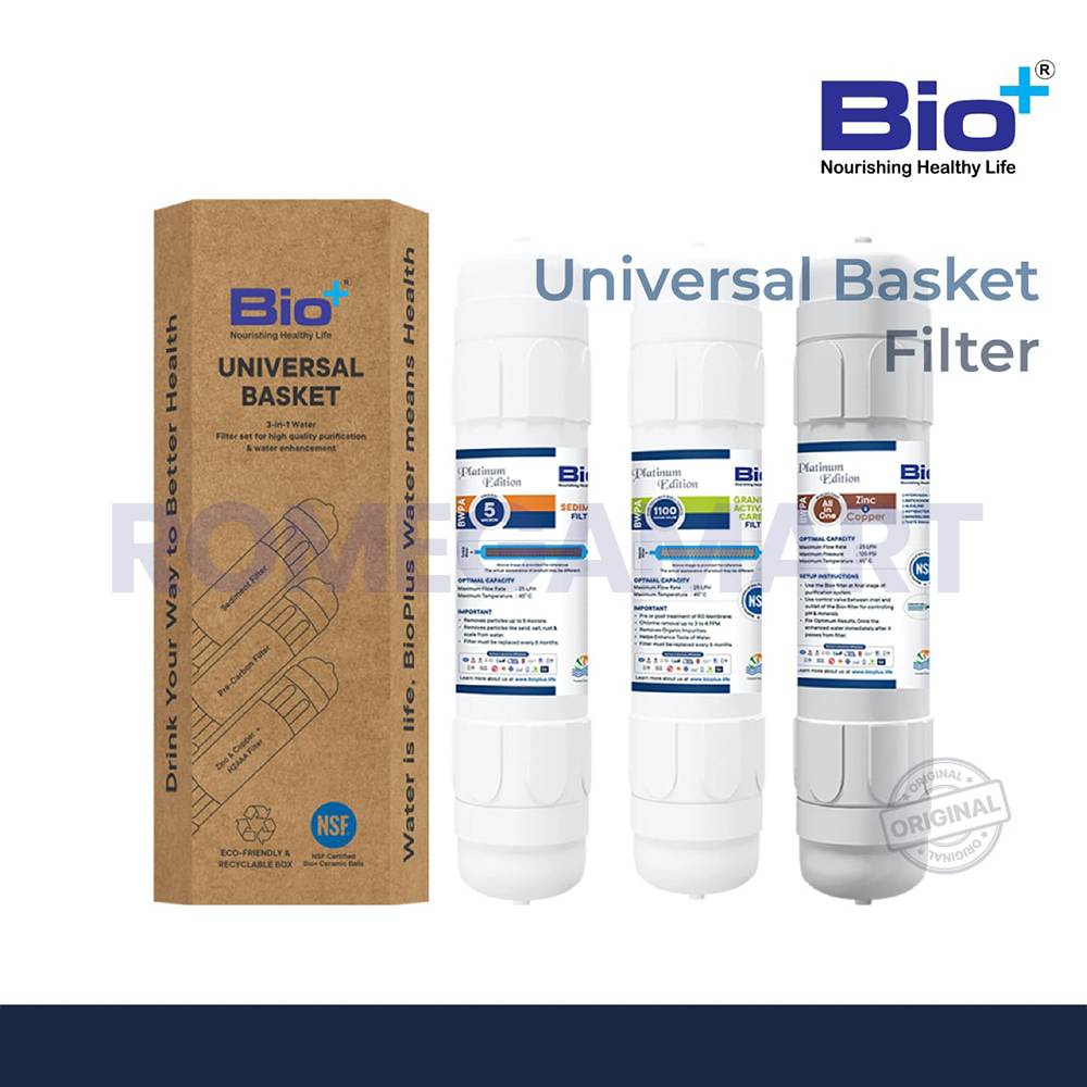Upgrade your home water purification system with the Bio+ Universal Basket 3 in 1 Water Filter Set in classic white color, specially designed for domestic use. This all-in-one set includes a pre-filter, sediment filter, and carbon filter, offering a complete filtration solution to remove dust, dirt, chlorine, bad odor, and other harmful impurities.