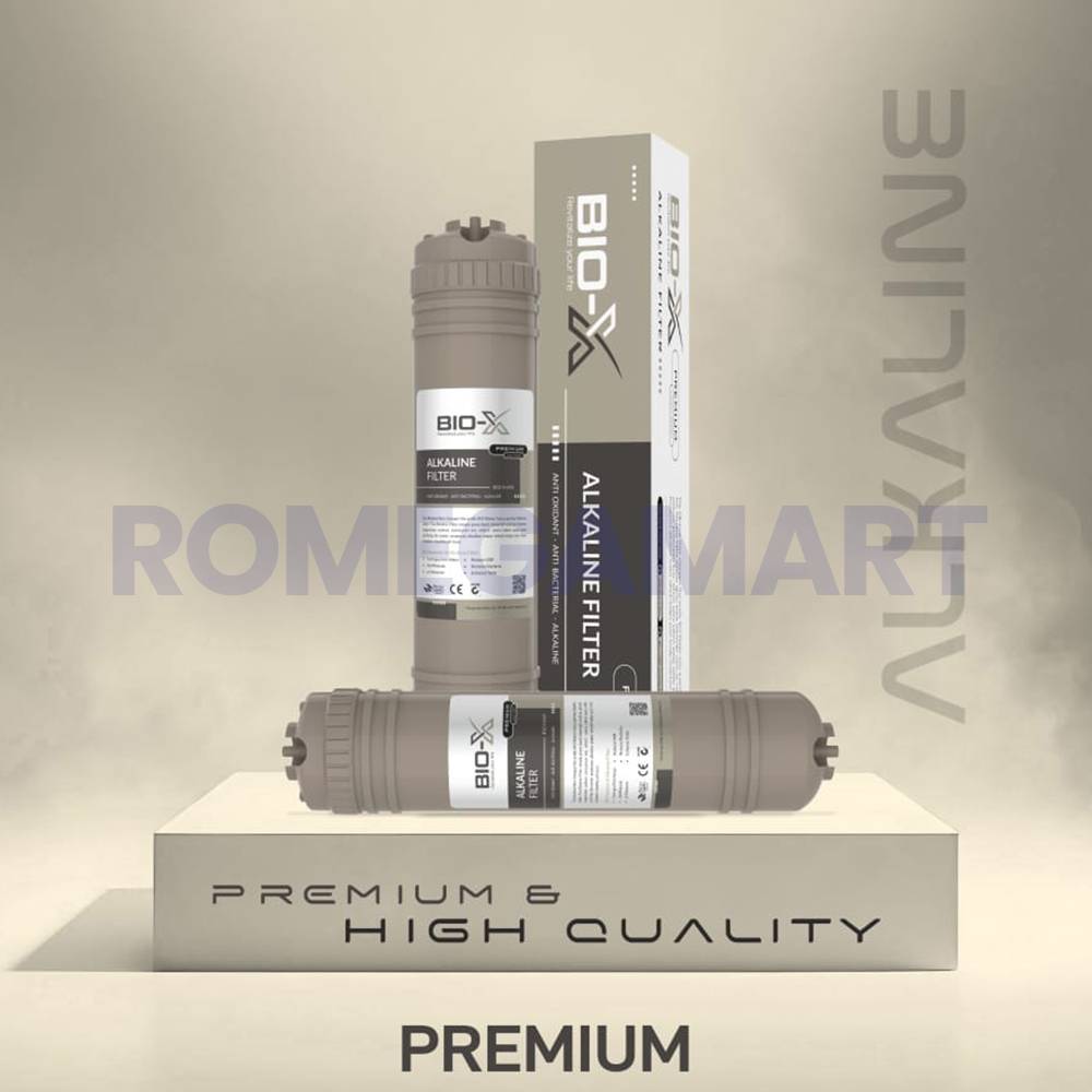 Get healthier, great-tasting water with the Bio-X Premium Alkaline Filter, designed for domestic water purifiers. Made with 100% virgin food-grade plastic in a sleek grey color, this filter enriches your drinking water with essential alkaline minerals like calcium, magnesium, and potassium.