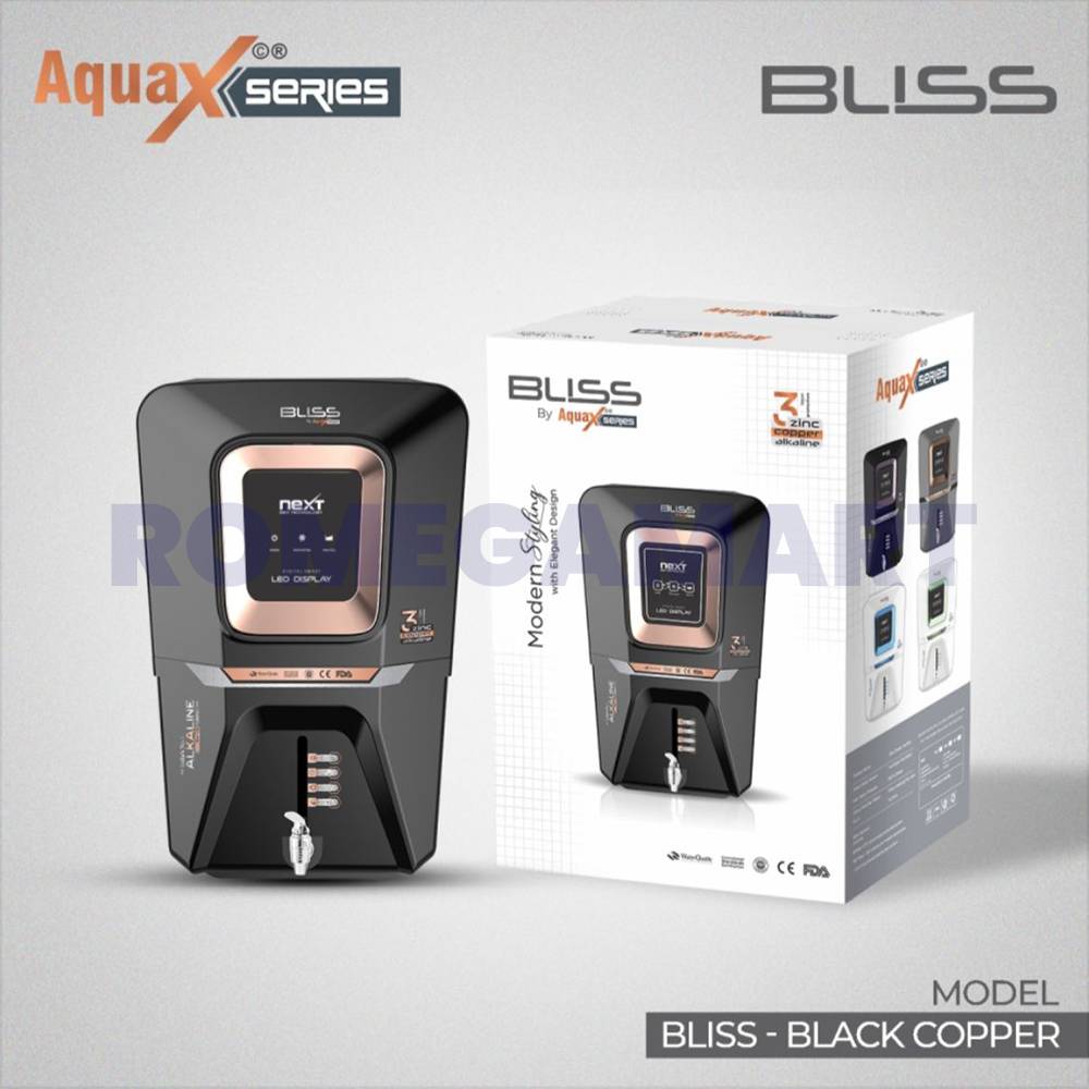 Experience pure and safe drinking water with the Bliss Aqua X Series 10-Liter Storage Black with Copper Color Water Purifier. Designed for domestic use, this stylish purifier features a 10-liter storage capacity, ensuring a steady supply of clean water. Its advanced filtration technology removes impurities, bacteria, and harmful contaminants, making it a reliable choice for your home. The sleek black and copper finish adds a touch of elegance to your kitchen while delivering high-performance water purification.