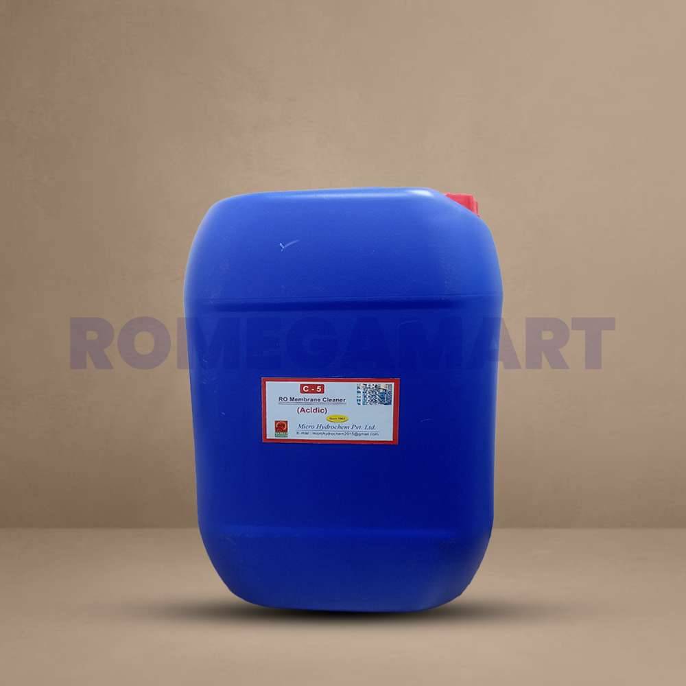 C-5 RO Membrane Cleaner Acidic is a powerful solution formulated to remove stubborn scaling and inorganic deposits from industrial reverse osmosis membranes. This 25 KG drum from Micro Hydrochem Pvt Ltd ensures optimal membrane performance and extended system life.