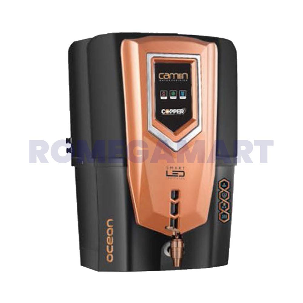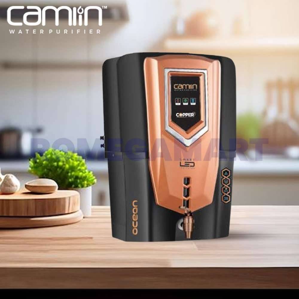 The Camlin Ocean Copper Black Water Purifier combines advanced purification technology with a sleek design. With a storage capacity of 10-12 liters, it provides an ample supply of purified water for your family. Featuring 7 purification stages, this purifier effectively removes contaminants, ensuring clean, healthy, and great-tasting water. The elegant black color with copper accents adds a touch of sophistication to your kitchen, while its robust filtration system guarantees your water is free from impurities. Ideal for those seeking both style and performance in their water purifier.