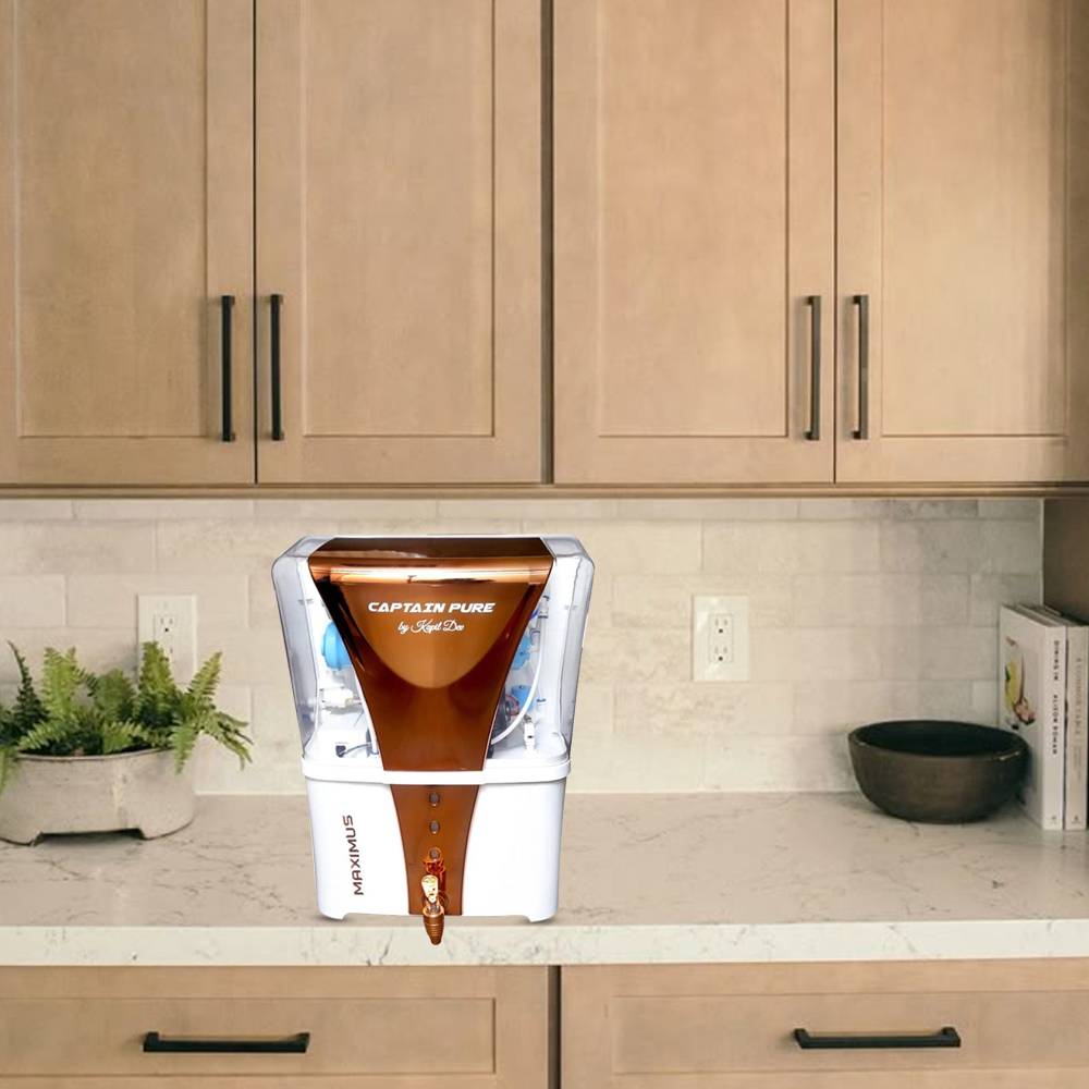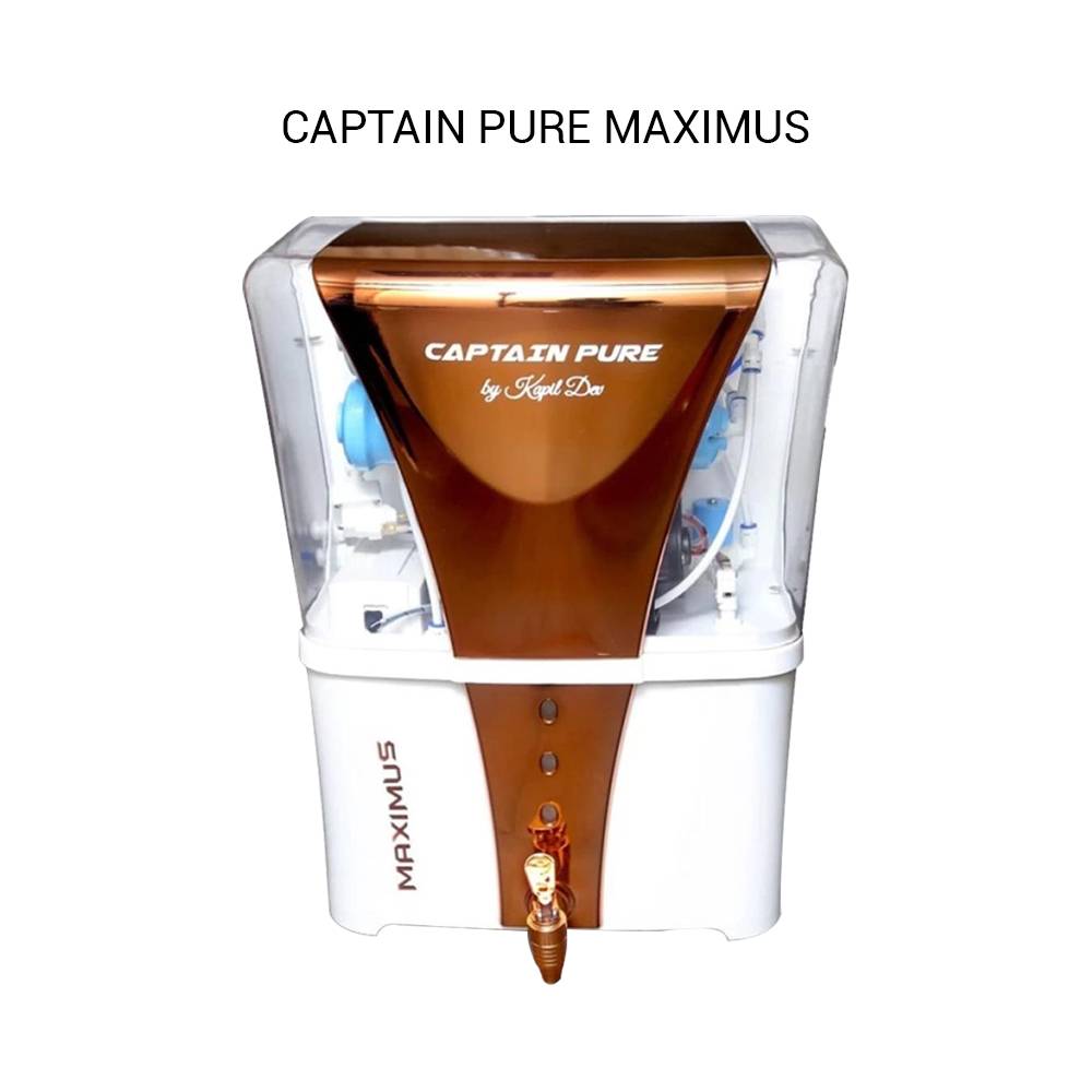 The Captain Pure Maximus by Mountain Water Purifier Technology is a premium water purifier featuring a sleek white design with copper TPT and a 12-liter storage capacity. Engineered for advanced filtration, it ensures safe, clean, and great-tasting drinking water. Ideal for homes and offices, it combines modern aesthetics with high-performance purification.