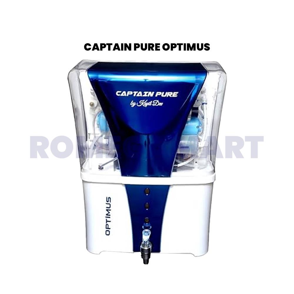 The Captain Pure Optimus by Himallya Ro is a high-performance water purifier with a stylish white body and blue TPT finish. Featuring a 12-liter storage capacity, it ensures safe, purified water with advanced filtration technology. Ideal for homes and offices, it provides reliable and efficient water purification with a modern design.
