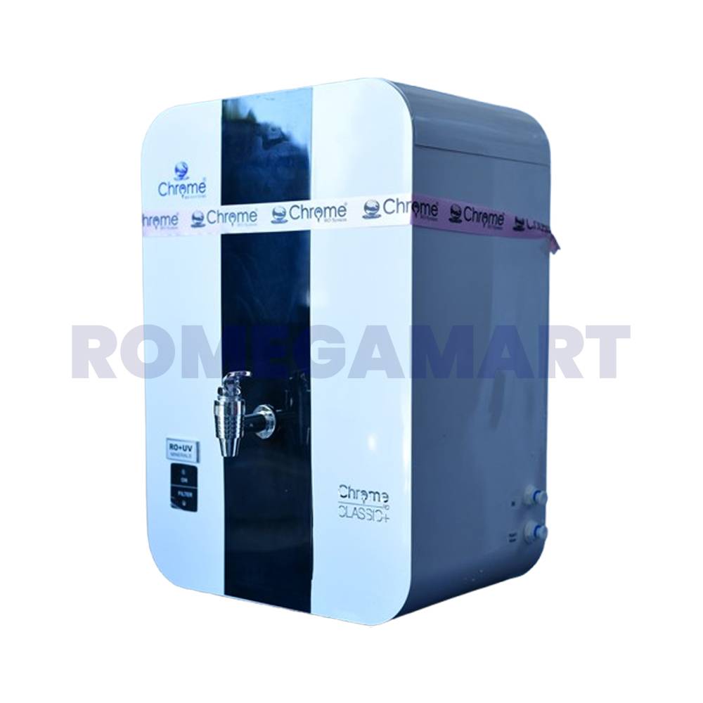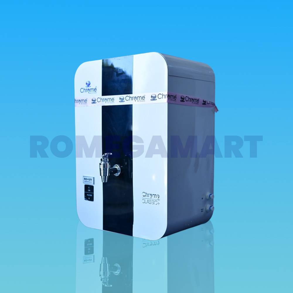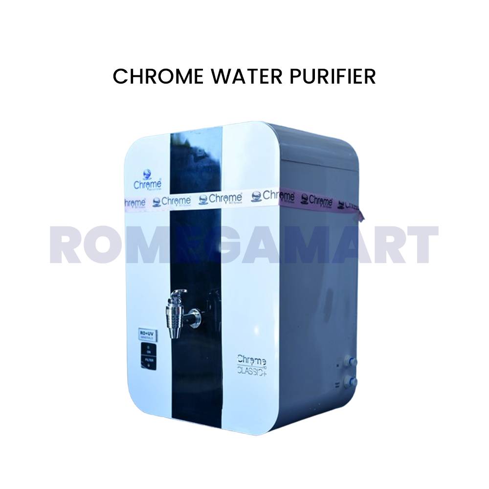 The Chrome White With Black Color Water Purifier integrates advanced purification technologies such as RO, UV, UF, and Mineral Cartridge, along with a TDS Controller, ensuring safe, pure, and mineral-enriched drinking water. Its sleek white and black design adds a modern touch to your kitchen while allowing you to monitor the purification process. Ideal for domestic use, this purifier guarantees your family has access to clean and healthy water every day.