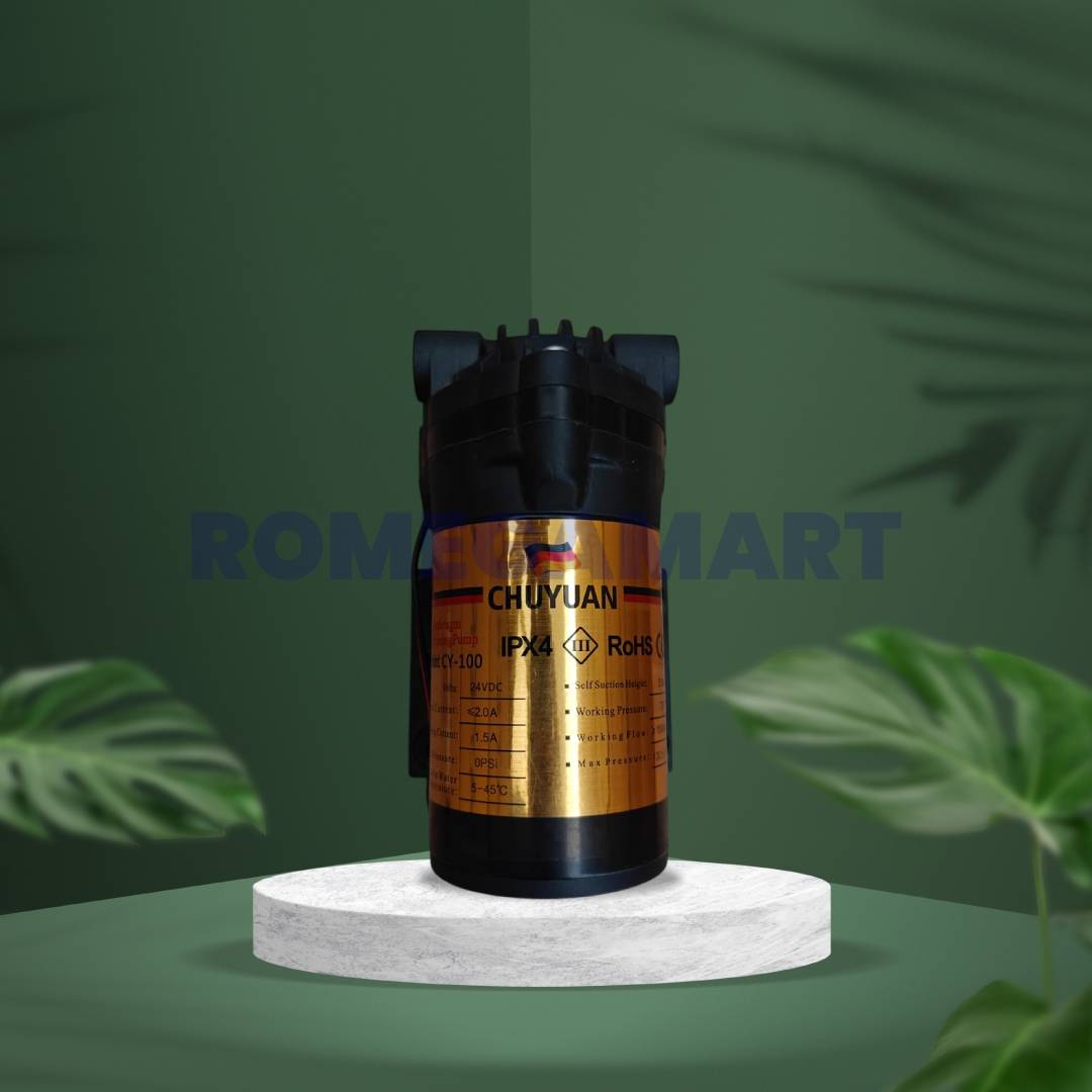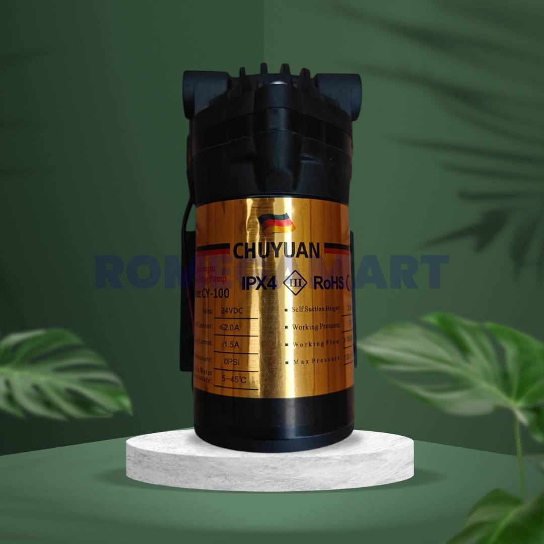 The Chuyuan 100 GPD Booster Pump from Aqua Khushi RO is designed to enhance the performance of domestic RO water purifiers by increasing low inlet water pressure. This high-efficiency pump ensures consistent water flow, allowing the RO membrane to work effectively and deliver purified drinking water without interruption. It is ideal for homes and offices facing low water pressure issues.