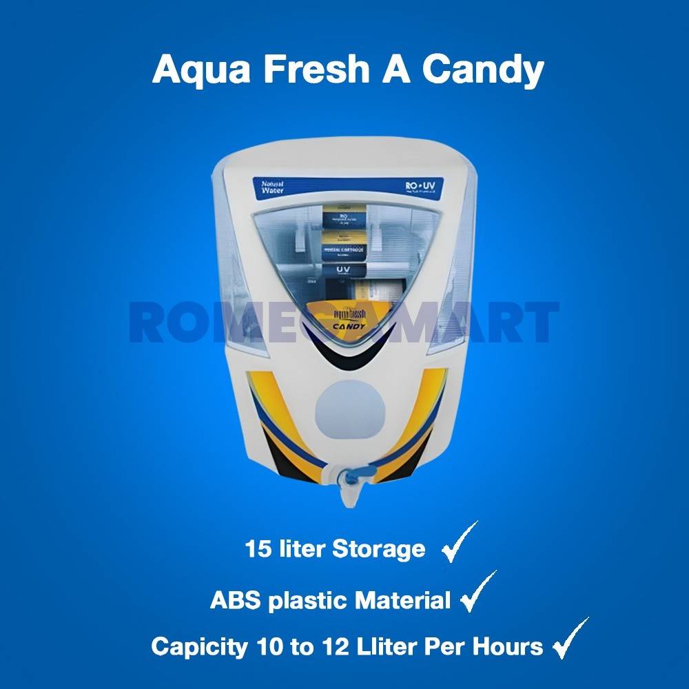 The Classic Aquafresh A Candy Water Purifier is a sophisticated solution for domestic water purification. With a generous 15-liter capacity, it ensures a continuous supply of clean and safe drinking water for household needs. The system likely incorporates advanced filtration technologies, including sediment and carbon filters, as well as a reverse osmosis membrane, ro system to effectively remove impurities, contaminants, and improve water taste. The sleek and modern design of the unit adds an aesthetic appeal to your kitchen or living space. Trust in the Classic Aquafresh A Candy Water Purifier for a convenient and high-quality water purification experience at home.