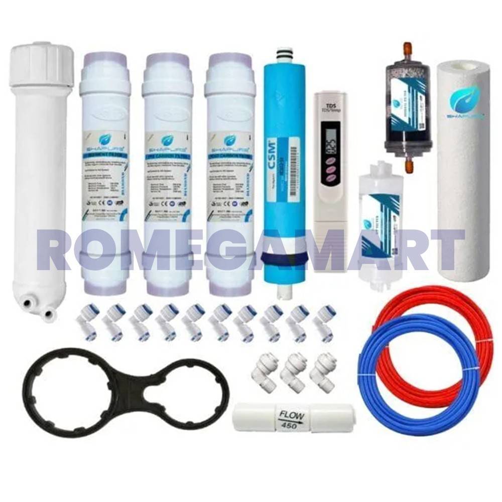 Features This membrane removes or reduces the contaminants like arsenic, chloride, mercury, lead, etc. This can be easily installed in ro water purifier filter kit. Don’t compromise with your family’s health as after all your family expects pure drinking water. This ro filter parts Compatible with most RO Water Purifiers Food Grade Plastic, Full ro filter parts. Suitable For All Branded And Assembled Water Purifiers. (75Gpd to 100 Gpd Both Type Booster Pump can be used) This Package of ro filter parts Contains; 1 pcs 80 GPD CSM Membrane, 1 pcs carbon,1 pcs post carbon, 1 sediment, 1 pcs Mineral 4 inch, 1pcs UF filter, 1 pcs TDS Meter, 1pcs spun, 8 Push fit connectors, 1 Teflon tape, 1 spanner, 3 Meter pipe each (BLUE & RED), 1 pcs flow restrictor (FR 450ml)