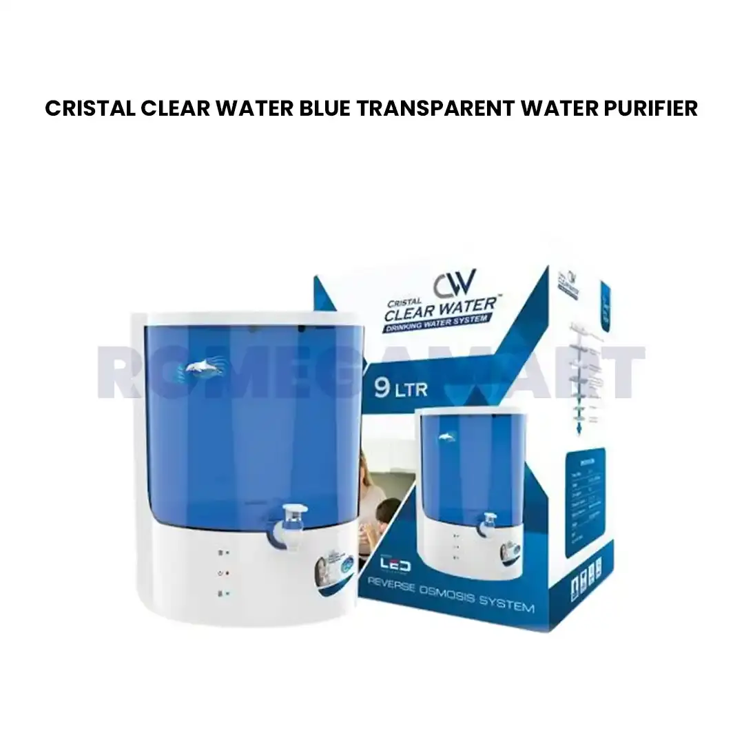 Bring home purity and elegance with the Cristal Clear 9 Liter Water Purifier by Chandausi Ro & Care. Designed with a blue transparent body, this purifier adds style to your kitchen while delivering 100% pure and safe drinking water for your family.