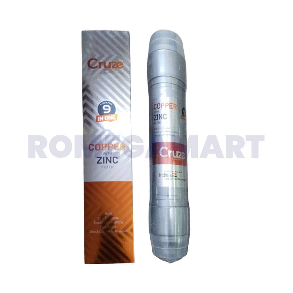 The Cruze 9-in-1 water filter is designed for domestic use, featuring a copper and zinc filtration system that enhances water quality by removing impurities. Its advanced 9-stage filtration includes layers of activated carbon, sand, and polypropylene materials that work together to eliminate bacteria, chlorine, and harmful chemicals, ensuring clean and safe drinking water. The copper and zinc components not only purify but also add essential minerals for a healthier lifestyle. With its durable polypropylene build, the filter is long-lasting and easy to install, making it an ideal choice for households seeking reliable and efficient water filtration solutions.